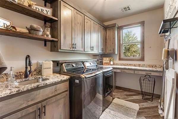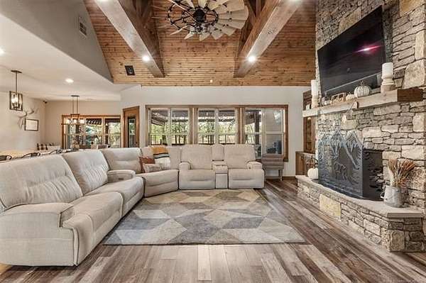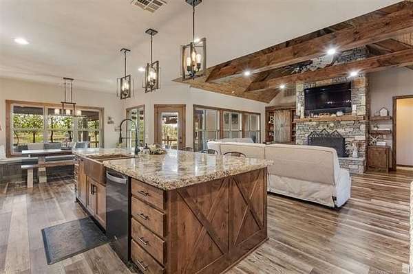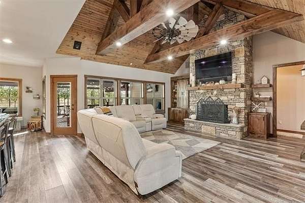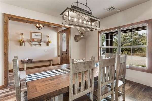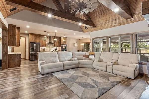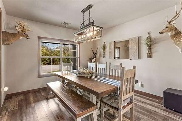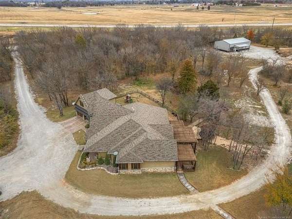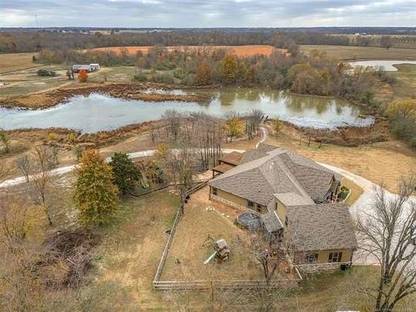 Welcome to your DREAM HOME on 20 beautiful Acres +/-! Luxurious Custom-Built Home, 40'x 60' Heat and Cooled Shop, New Horse Barn, 2 Ponds and More! This home features: 4 bedrooms, 2.5 bathrooms, 2 car attached garage, Theater Room, Formal Dining, Breakfast Nook, Safe Room, Surround Sound. Built with 2x6 Exterior Walls and Spray Foam Insulation for Energy Efficiency . Breathtaking Knotty Alder Woodwork and Cabinets throughout. Enjoy your Chef's Kitchen with Oversized Pantry, Granite Countertops, Slow-Close Doors and Drawers. Large Master Suite includes a Large Walk-in Shower, Double Sinks, and a Spacious Walk-in Closet with an Island. Master Closet Conveniently Connects to the Laundry. Upstairs you will find the Theatre Room with Bar Area , Star Ceiling and Reclining Chairs. Safe room for added peace of mind. Enjoy your Covered Patio with Extended Deck and Pergola, Stamped Concrete, Dog Run, Fire Pit, 20 Acres Cross Fenced for Animals, Two Ponds with fish, and Large Gated Entrance with Electric Gate/ Keypad. 40x60 Shop with the following features: Separate Entrance and Aerobic System, 3 Overhead Doors, Epoxy Coated Floors, HVAC, Office, Full Bath, Spray Foam Insulation, 16'x 60' Loafing Shed, RV and Sewer Hookup, Huge Industrial Fan. Bring your HORSES! 30'x40' Horse Barn with 2 Lean-tos, Tack Room, Stalls, Conduit in place for future Electric Hookup. This Property Offers a RARE Combination of LUXURY Living, Functional Ranch Amenities, and Wide Open Space. Perfect for those seeking a Peaceful Country Lifestyle without Sacrificing Modern Comforts. THIS IS A MUST SEE!!!!!