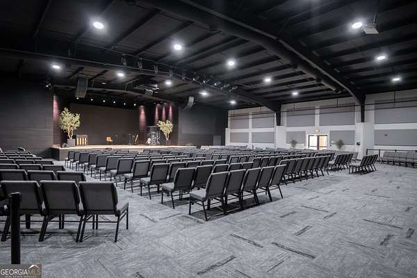 Georgia Premier RE Advisors is pleased to present this unique commercial property featuring two well-maintained buildings totaling approximately 24,750 square feet, situated on 6 acres with road frontage on two separate streets and 150+ on-site parking spaces, ideal for high-traffic operations, events, or multi-use commercial occupancy. The buildings offer a highly functional and versatile layout, including multiple office suites, conference rooms, numerous restrooms, a full commercial kitchen, break room, storage areas, and a dedicated production/broadcast room. A standout feature of the property is its 200-seat auditorium as well as 700-seat auditorium, making it perfectly suited for corporate headquarters, training facilities, educational institutions, houses of worship, event venues, media production, or mixed-use commercial purposes. Recent upgrades enhance both efficiency and security, including WiFi-enabled thermostats, Ring security camera systems, a Tesla charging station, and replacement of most HVAC units. This is a fully turnkey opportunity-all audio/visual equipment, broadcast and production equipment, furniture, LED TV walls, and related technology will convey with the property, offering immediate operational readiness and significant value. With its size, infrastructure, premium upgrades, and strategic accessibility, this property presents a rare opportunity for investors or owner-users seeking a large-scale, flexible commercial space with built-in amenities and modern systems.