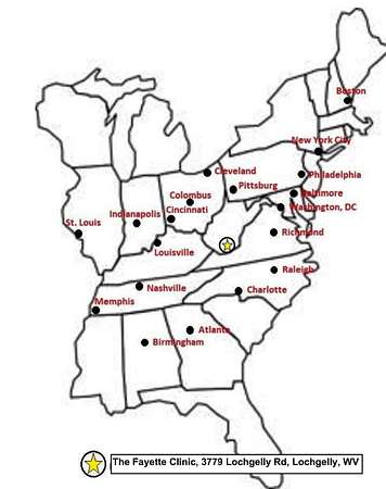 From the US Route 19 Expressway, take the Mall exit and take Lochgelly Road for about one mile. Fayette Clinic is across from the Lochgelly Post Office.