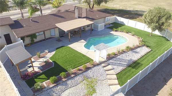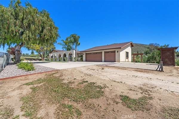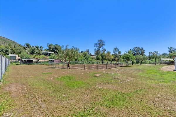 Welcome to this Murrieta estate--an inviting, custom single-story oasis set on 3.26 acres of well-maintained land where natural beauty, usable space, and everyday comfort come together. Nicely remodeled, this home blends modern luxury with the calm of country living, creating a lifestyle designed for both relaxation and recreation. Inside, the open-concept layout is filled with warmth and character, highlighted by a striking tongue-and-groove wood beam ceiling and a dramatic floor-to-ceiling stone fireplace. Thoughtful details continue throughout, including bench window seating, brand-new stainless steel appliances, granite countertops, and high-end finishes. Fresh paint and upgrades shine with luxury vinyl flooring, soft carpet in the bedrooms, and new baseboards throughout. The home offers 3 spacious bedrooms and 2.5 updated bathrooms--with oversized bedrooms, a luxurious primary suite, and a generous walk-in closet. Both full bathrooms feature double-sink vanities. New window coverings throughout complete the clean, finished look. Step outside and fall in love with the private backyard paradise, professionally landscaped. Take a dip in the swimming pool, unwind beneath the covered patio, or fire up a grill under the stylish cabana--an ideal setting for gathering with friends and family. The backyard is enclosed with vinyl fencing, creating a safe, private outdoor sanctuary. Beyond that, the entire 3.26-acre property is surrounded by secure chain-link fencing, offering peace of mind and plenty of room for RVs, boats, trailers, and recreational toys. A three-car garage and storage shed add convenience and flexibility. Equestrian enthusiasts will appreciate the riding arena and pipe corrals, with ample space for horses and potential to expand. Adding to the property's charm is a seasonal creek meandering through the grounds, complete with a bridge crossing, and framed by mature walnut, pepper, and eucalyptus trees creating a tranquil, shaded setting. Landscaping is supported by a water-efficient drip system, including an automatic setup for the yards. Ideally located close to parks and within the highly-rated Murrieta Valley Unified School District. This property also offers outstanding practical advantages: ADU potential, service by a private well with an optional city water connection available, and close proximity to shopping, restaurants, and hospitals. This Murrieta gem truly has it all--space, style, privacy, and a setting you'll love coming home to.