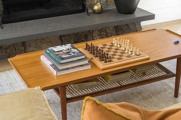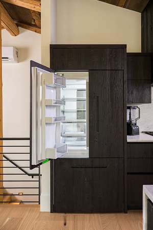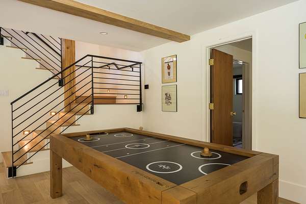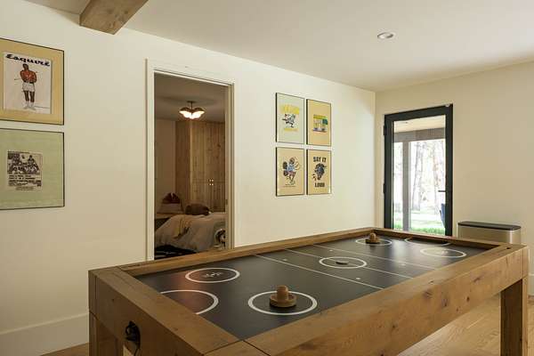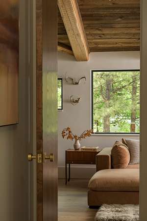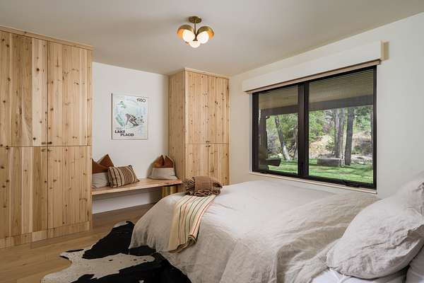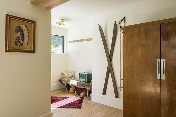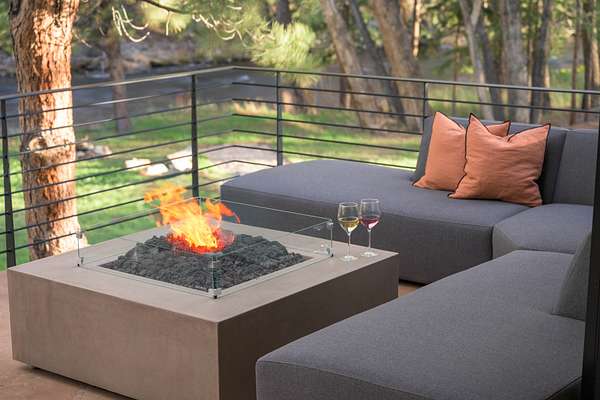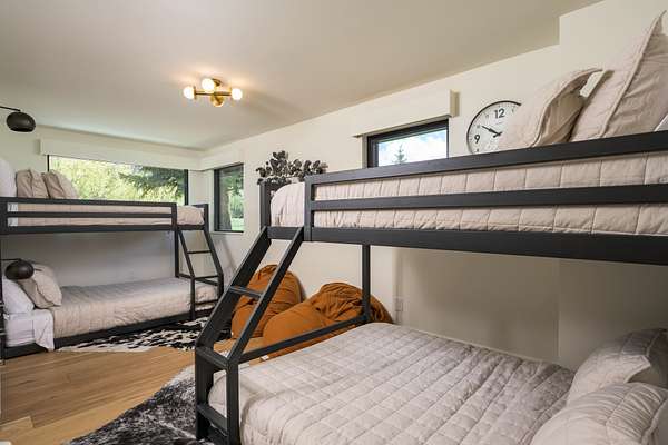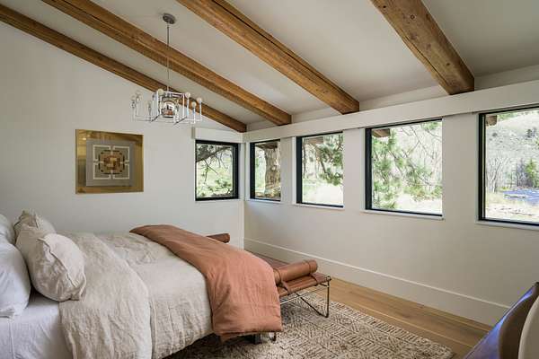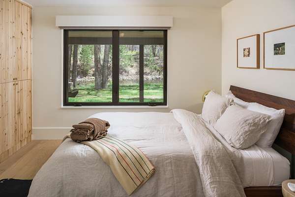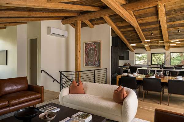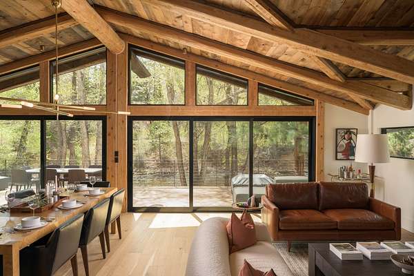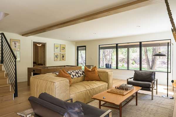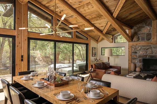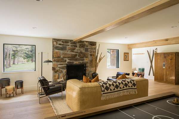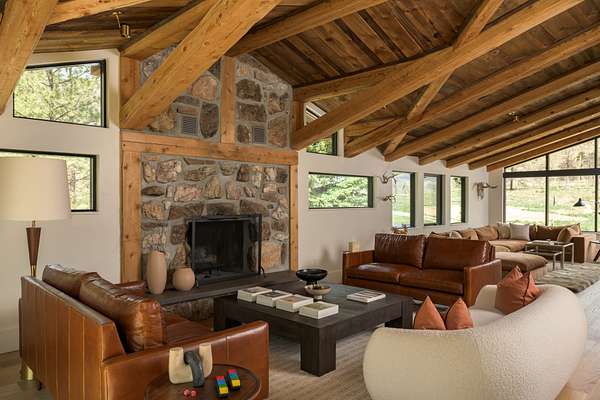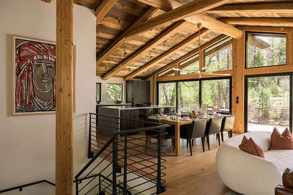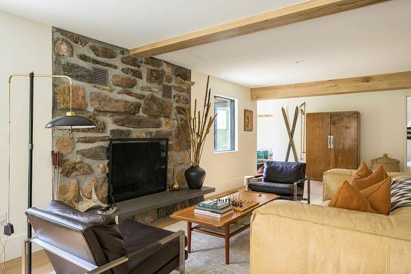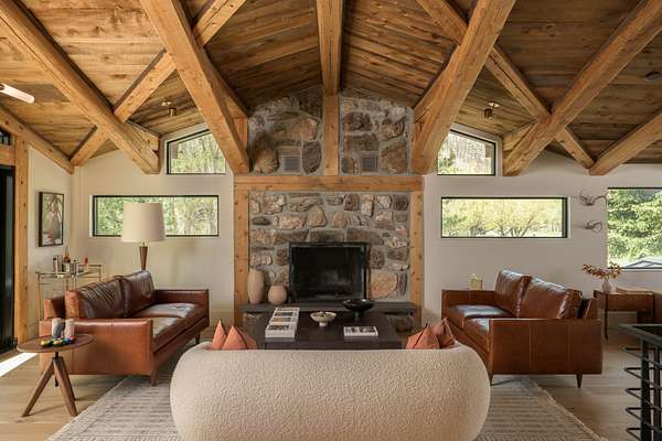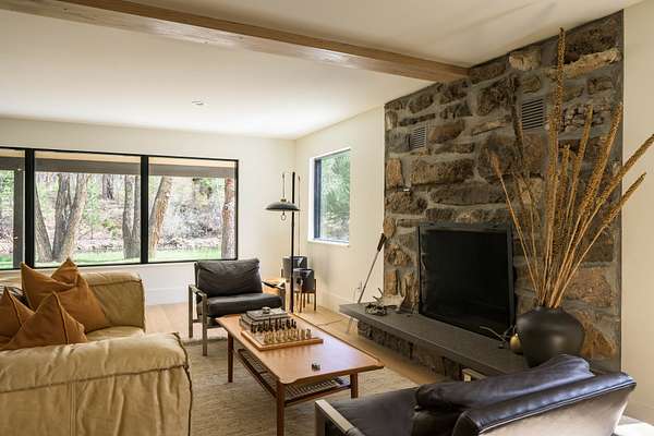 This 2,976-square-foot home has been fully reimagined from the ground up by its developer-owner for personal use and was designed in collaboration with renowned interior designer Bree Halax. The result is a residence that is both deeply functional and visually striking--crafted to live beautifully in all seasons. The great room features a vaulted wood-beamed ceiling and original stonework preserved from the 1970s structure, now paired with modern touches and expansive windows that frame the river just beyond. Twin triple panel glass sliding doors lead to a stunning second story deck with a built-in fire table where one can enjoy the views and the constant soundtrack of moving water.