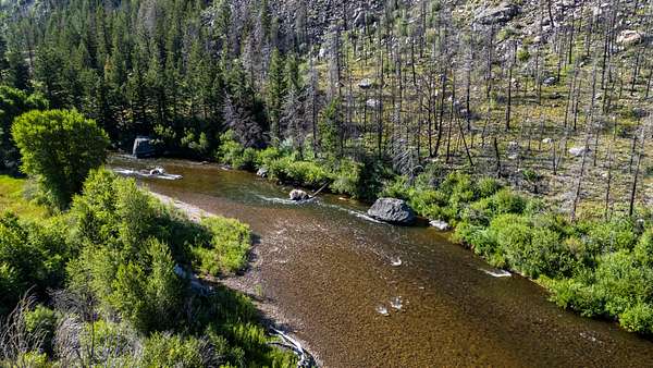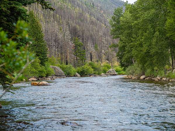 Encompassing 63.8 acres and bordered by vast national forest, this property offers direct access to miles of private trails--including one that leads straight from the backyard into the alpine wilderness. Mature cottonwoods and aspens shade the land, their colors shifting dramatically with the seasons, while dramatic rock outcroppings form a rugged and inspiring backdrop. The river here is exceptional. Located just below the fish hatchery, this stretch of the Poudre is renowned for its healthy populations of rainbow trout, big-bodied browns, and the occasional trophy cutbow. With classic western features--deep runs, clean riffles, large holding boulders, and prime casting lanes--this is a fly angler's dream. Step into the water from your own property or simply sit on the deck and watch the fish rise. Elsewhere on the property are four discreet RV sites--remnants of a former campground--repurposed to welcome visiting friends and family.