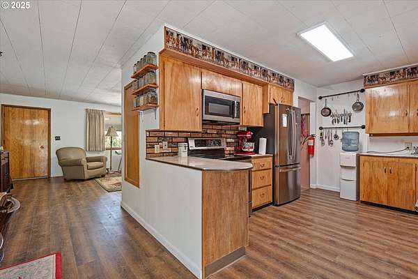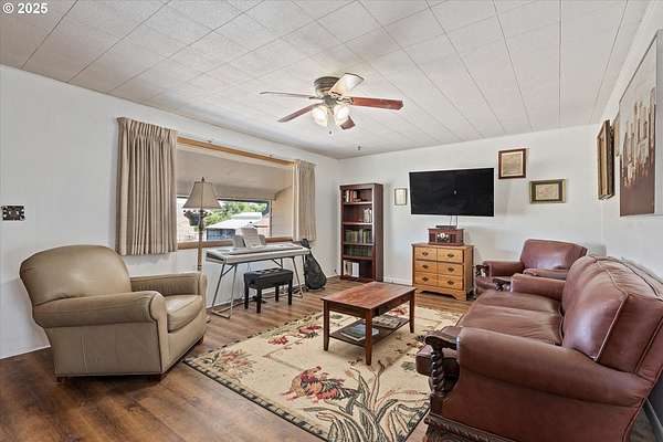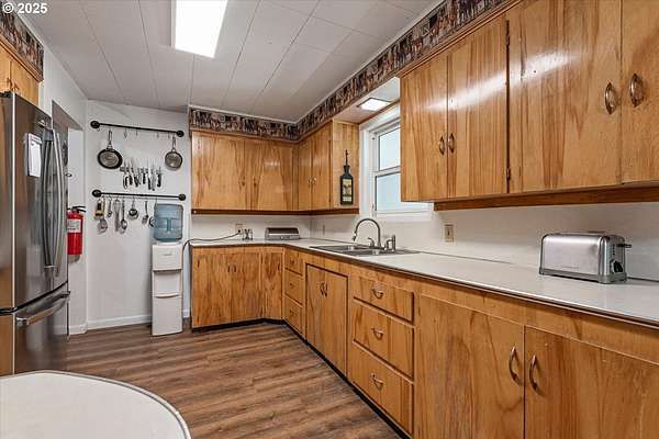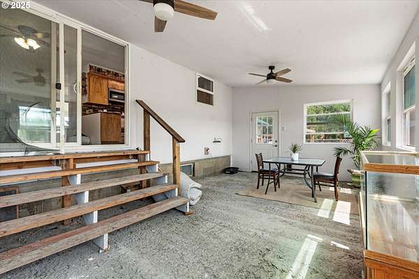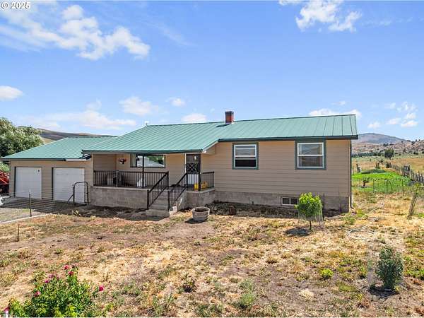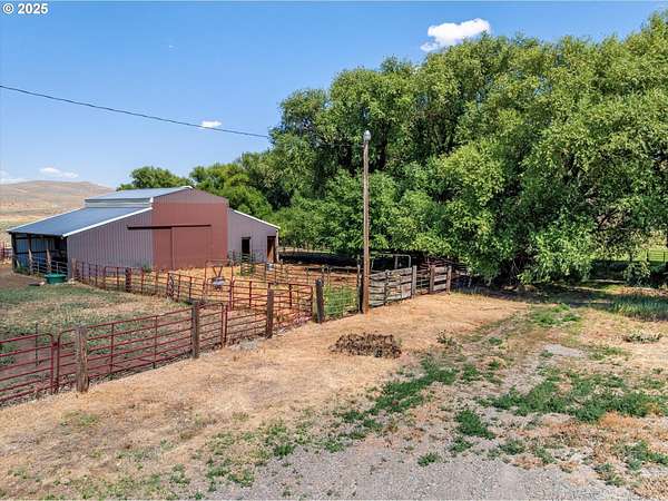 Modernized 1950's farmhouse with a 3-bed one bath mezzanine level, a large sunroom at ground level and a one bed full bath with dressing room in a semi-finished basement. Situated just 11 miles from the tourist town of Baker City.Situated at an elevation of 3,500' with true 4-season climate and nights so dark the Milky Way is always visible when no moon, the ranch boasts 160 acres (less 3 acres taken by county road) of fully fenced pasture, and three-quarters of a mile of Alder Creek that runs fast all year and is lined with huge Alder Trees, giving an abundance of firewood and water rights. There is a full-sized barn, corral, cow chute, several other smaller sheds for goats and chickens, a vegetable garden, fruit trees and a detached art studio/sewing room with 240v service for a pottery kiln.The hunting is first rate with elk, turkey and quail often around the house and migrating geese nest along the creek for a few weeks each year. As owner, you will get six land-owner tags. There are mussels and crawdads in the creek and Alder Creek Rd continues into the forest, so there is little passing traffic and thousands of acres of forest and BLM hunting land.The ranch has Income. There is yearly income from livery and pasture rental that last year was $5,320, and property taxes are low at just $1611 a year.A new septic system was installed six years ago when the contractor set the tank at a depth of five feet where county code says it should be three, so the new system may not be to code, but has worked flawlessly and has not needed pumping since installation.New 200-amp power to house and all barns and sheds, exterior security light and flood lights in barn, and Oregon Trail electric at only 7 cents a KWH!