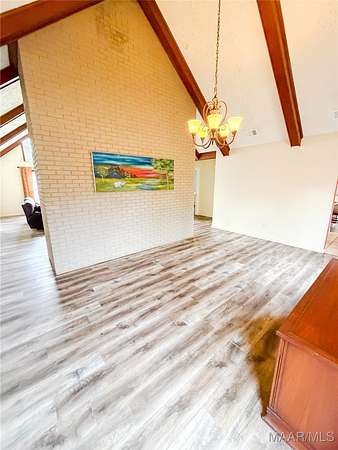 Welcome home to this inviting and well-maintained property offering space, comfort, and timeless character. The living room features soaring vaulted ceilings and exposed beams and a striking painted brick fireplace that serves as the heart of the home. Large windows fill the space with natural light, creating a warm and welcoming atmosphere. The open-concept layout flows seamlessly into the dining area, kitchen and adjacent spaces, making it ideal for everyday living and entertaining. The primary suite is generously sized with plenty of room for a sitting area and includes a beautifully updated bathroom featuring a double vanity, modern fixtures and a stunning freestanding soaking tub. Additional bedrooms offer comfortable accommodations for family or guests. Durable flooring runs throughout the main living areas, while neutral tones provide a move-in-ready feel. Step outside to enjoy the fenced in-ground saltwater pool and covered patio, perfect for summer gatherings and relaxing weekends. The expansive 4-acre yard offers privacy and room to roam, all in a peaceful setting. This property combines classic charm with modern updates and plenty of space.