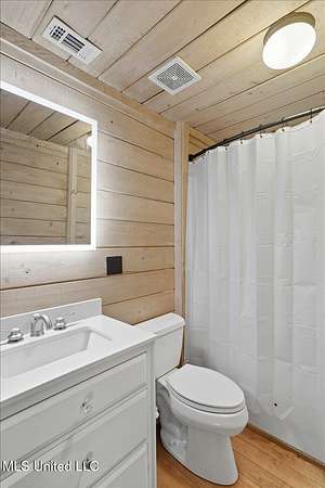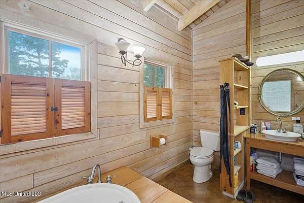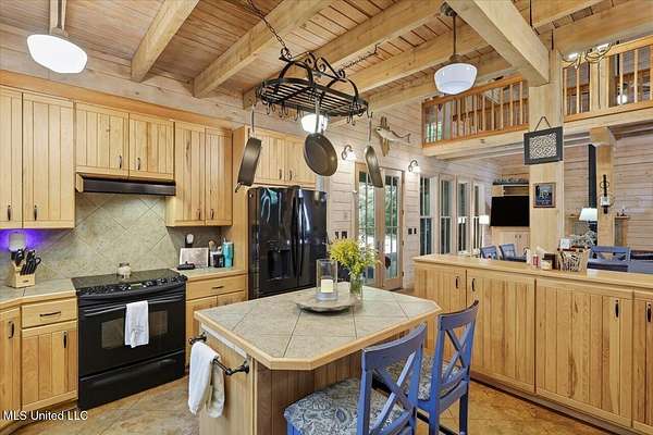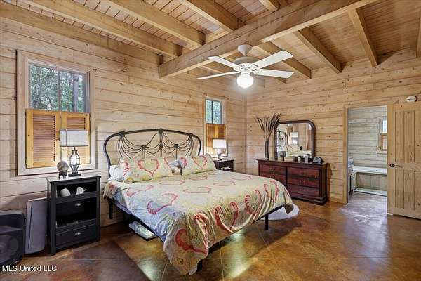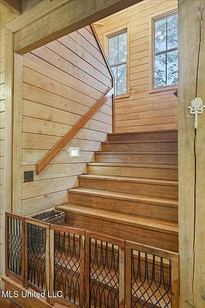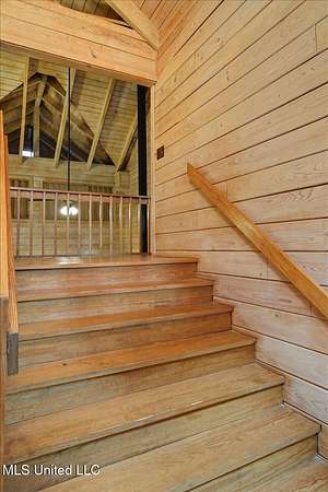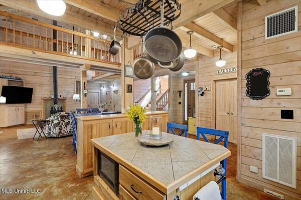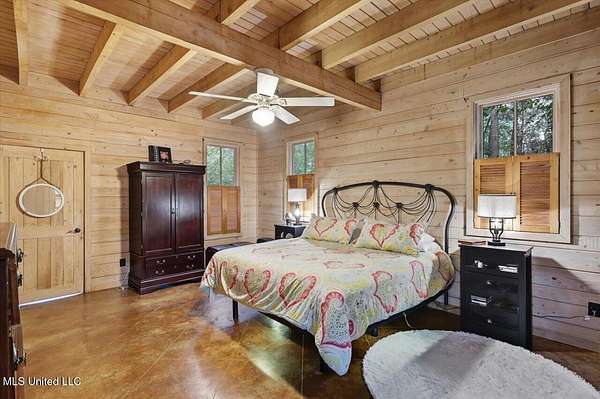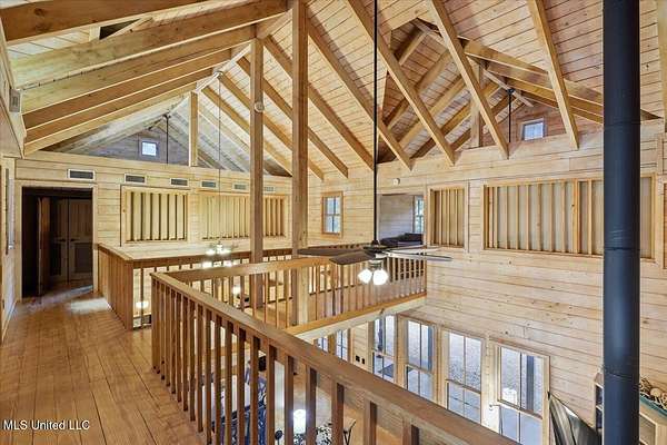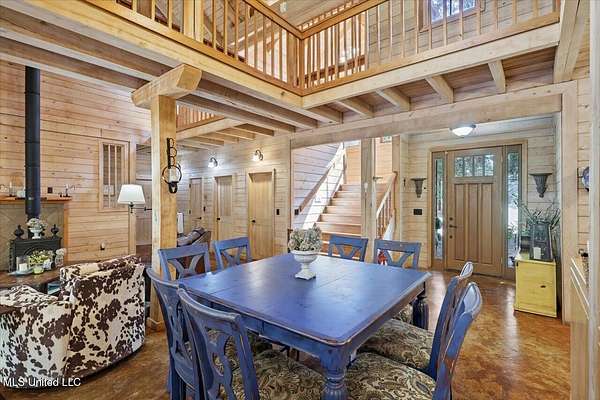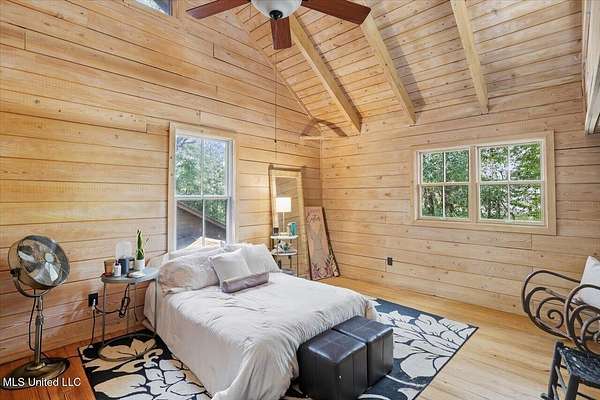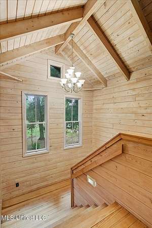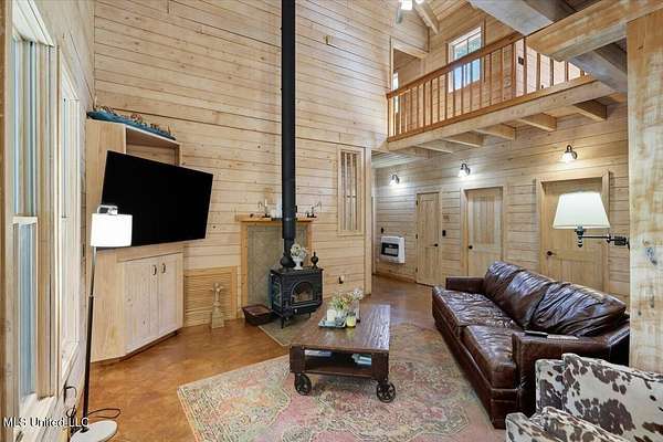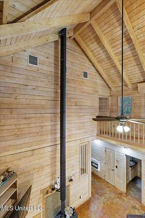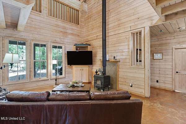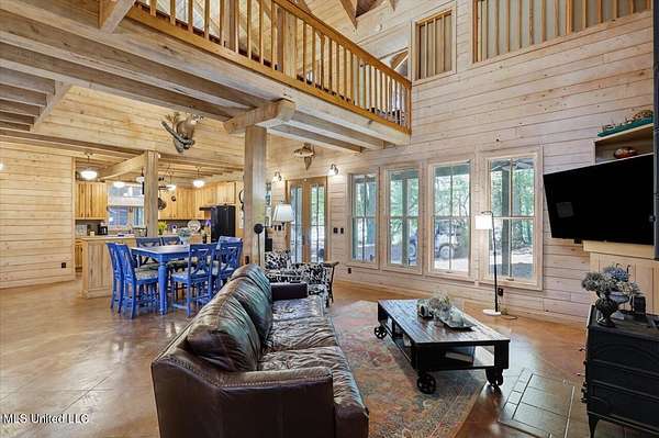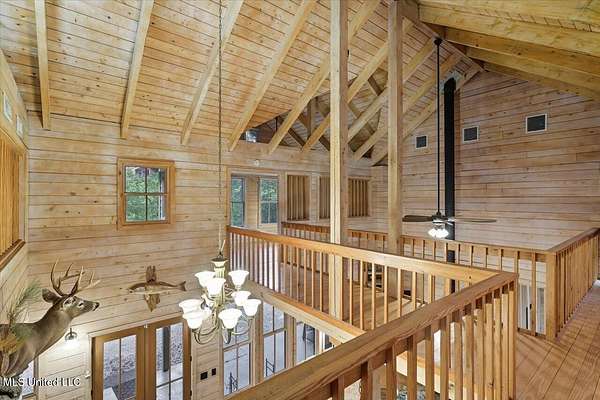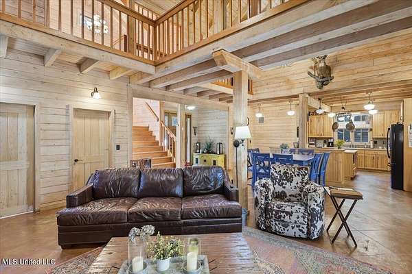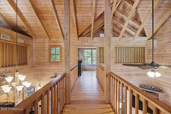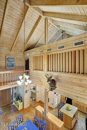 This unique cypress-built home is nestled on 10 acres overlooking the Strong River! Downstairs, you'll find an open kitchen and living room that showcases the vaulted ceilings, wood beams, and the crosswalk. Additionally, there is a large walk-in pantry, a laundry room, an office space, a half bathroom, and a primary suite with a sunroom. Upstairs, there are two additional bedrooms, both with walk-in closets, a full bathroom, and an 'eagles nest' that overlooks the Strong River. The exterior includes a covered back porch with a covered walkway leading to a pavilion, and a double garage and storage space. Home is equipped with 4 HVAC units (2 electric heat, 2 gas heat), 2 water heaters, central vacuum, and plenty of storage space. This home is a dream!
