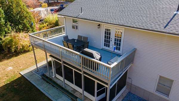 Beautiful 4 Bedroom Raised Ranch Split Level on on a lovely wooded lot located on 2.17 acres awaits you! Step into the open floor plan with a large & bright living room.Open kitchen that has full stainless steel appliances,high island bar, glass backsplash & tile flooring. Formal dining area with French doors to outside deck.Hardwood flooring! Open floor plan for entertaining & the holidays to come! 1st level has 3 bedrooms with a master suite & a full bathroom! Jacuzzi tub! The bottom level in this split ranch is ready for in-law potential.There is a custom bar, kitchen, full bath along with lots of additional living space & even a home office. Custom built-ins! New Septic installed in 2024! Have your morning coffee on the deck and enjoy the peace and sounds that nature has to offer. Huge backyard for many social gatherings! Close to major highway but away from it all in the quiet dead end st close to conservation land! 1st showing at Open House Saturday 10:30-1pm!