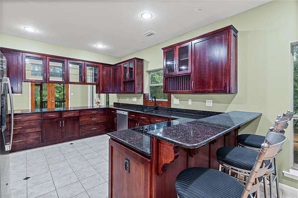 Built in 2005, and set on 3.22 acres in a quiet West Mobile community, this expansive 3,496 sq. ft. residence has 4 bedrooms with walk-in closets, including a main floor bedroom with an attached bathroom and 3.5 additional bathrooms; a large main floor office; first-floor laundry; a light-filled, open-concept dining; kitchen with modern appliances and a spacious walk-in pantry; 20-ft windows and electric fireplace in the living area; and a central vacuum system. The backyard features a screened-in porch with a fully equipped outdoor kitchen. The 3-car garage provides ample storage, including a full bath and media room. A private gated driveway ensures both privacy and security; the security camera system will remain with the house for an added peace of mind. Call your favorite Real Estate Agent to schedule your private showing today. All photos are copyright protected and are the sole property of the listing agent. Unauthorized use, distribution and/or copying is prohibited. Buyer and buyer's agent to verify all measurements and any other information deemed important to them during the due diligence period. Property is being sold AS IS where is, with no repairs or warranties expressed or implied by the sellers.