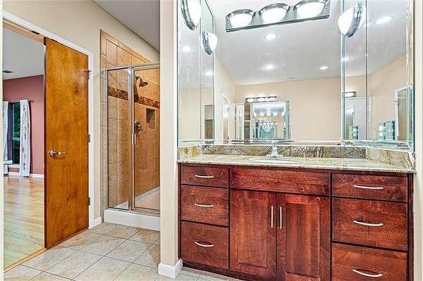 - Central Vacuum, Disappearing Attic Stairs, Double Vanity, Entrance Foyer, High Ceilings 10 ft Main, Recessed Lighting, Sound System, Track Lighting, Tray Ceiling(s), Walk-In Closet(s)