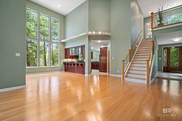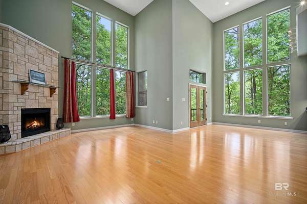 4BR, 4.5 BA private home on 3.22 acres with NO HOA, surrounded by woods for a peaceful, secluded feel just minutes from shopping, dining, and interstate access. Gated entry, long driveway, and 3-car garage with media/flex room ideal for gym, workshop, or hunting/fishing storage. Main level features soaring 20’ ceilings, floor-to-ceiling windows, open living/dining area, corner electric fireplace, and screened porch with outdoor kitchen. Spacious kitchen with walk-in pantry, stainless appliances, breakfast bar, and dining area. Primary suite on main level with private porch, spa bath, large walk-in closet, and prayer/meditation room. Upstairs offers 3 bedrooms with large walk-in closets and 2 full baths, plus balcony access. Hardwood floors throughout. Ample outdoor space for gardening, future pool, or more! Buyer to verify all information during due diligence.