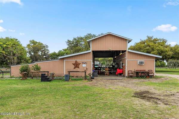 This sprawling 146-acre gem, boasts an impressive 3,000 feet of pristine Lake Griffin water frontage. Currently a serene horse and RV ranch where tranquility meets nature, this property also features a convenient boat ramp for easy lake access. This property affords many development opportunities even a mixed-use development with single & multi-family home possibilities, Opportunities like this are rare near The Villages! Utilities are assumed to be within 3 miles of site. Buyer should perform own due diligence including but not limited to end use studies, engineering & design, feasibility, and cost estimates. Nice 3 BR home, barns & other facilities included.