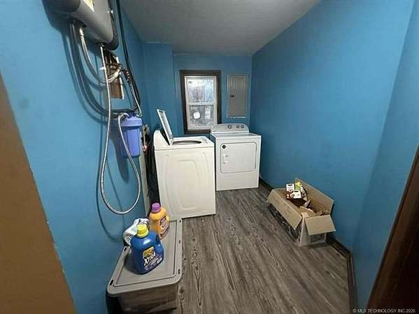 From Disney, OK go east to County Road 492 (Tia Juana Fire Department) and turn south; follow road south past Little Blue State Park for approx. 1 mile from turnoff of Highway 28 (Main St); Property is on the west side of the paved road.