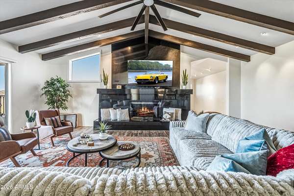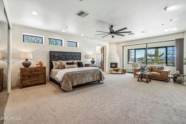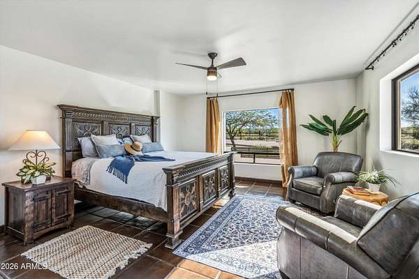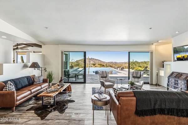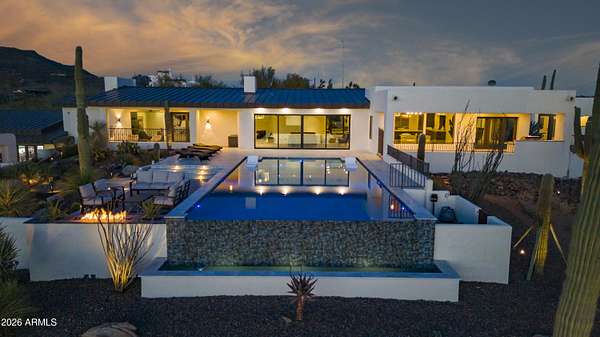 Exceptional 9.8 acre gated ranch estate with three private entrances, ideally positioned at the end of Pima Road in Carefree. Enjoy a rare blend of privacy and convenience with quick access to Scottsdale, the airport, and the small-town charm of Carefree and Cave Creek. The property captures sweeping 360-degree mountain views with stunning sunrises and Arizona sunsets from each window. An rare opportunity combining luxury living, equestrian facilities, and substantial car collector storage in one versatile compound. Resort style living unfolds at the spectacular elevated pool and spa patio, where an infinity edge pool draws your eye toward breathtaking sunsets and twinkling city lights, complemented by inviting firepit seating designed for memorable evenings of entertaining. More..... - 4 Separate Living Areas: Hilltop Main House: 9,392 SF, 3 Bed, 3.5 Bath, kitchen, 2 dining, 2 living Guest House: 3 Bed, 2 Bath, kitchen, living Guest Apartment by Pavilion: 1 Bed, 1 Bath, kitchen, living Barn Bunkhouse: 1 Bed, 1 Bath, kitchen, living, laundry Total Living Space: 11,481 SF - Elevated resort style pool and spa with Baja shelf, fire feature, multiple seating areas - Equestrian amenities: 6 stall barn, feed room, tack room, wash rack, 3 turnouts, 200 x 90 lighted arena - 4,600 SF of garages and shop space with 20+ car capacity, majority climate controlled - Total temperature controlled space: 16,595 SF A rare Arizona ranch estate offering acreage, panoramic mountain views, multi residence flexibility, horse facilities, and large scale climate controlled collector storage, all within convenient reach of city amenities.