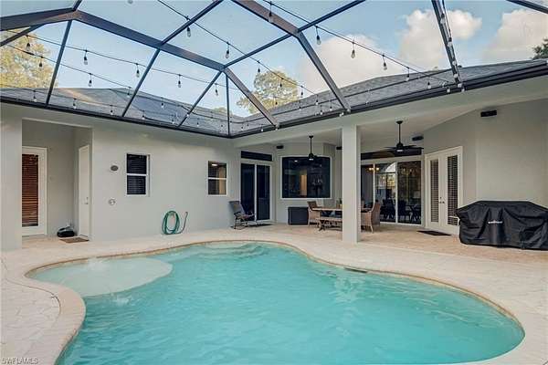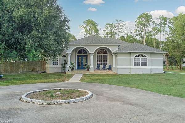 Welcome to your own private oasis tucked away just off Collier Boulevard! This beautifully maintained 4 bedroom, 2.5 bath pool home sits on an oversized 2.73-acre cleared lot, offering the perfect blend of tranquility, nature, and modern living. Enjoy a custom pool with tanning shelf, elegant fountains, and plumbing for a future outdoor kitchen, making it ideal for entertaining or unwinding in complete privacy. The fenced backyard provides peace of mind and includes two wind-rated Amazon storage buildings (120 mph rated) for all your toys, tools, and extra storage. Inside, you'll find 2,537 sq ft of comfortable living space filled with natural light and thoughtful updates throughout. The home features new appliances, fresh interior paint, a brand-new reverse osmosis system, and a new roof with gutters (2022). Solar panels are fully paid off, keeping your pool heating bills low. Additional highlight of the home is the oversized guest bedroom suite, complete with its own wet bar and half bath, offering direct walk-out access to the pool and lanai - perfect for guests, entertaining, or even a private retreat. Additional features include a well-fed irrigation system, pumped septic system (March 2025), and beautifully landscaped grounds with plenty of room to expand or simply enjoy the peaceful beauty of Southwest Florida's natural surroundings. Includes a 100' x 90' agility field with a durable screenings surface-similar to horse arenas-ideal for training, recreation, or equestrian use. The space could also be converted into pickleball courts, a workshop, or customized to fit your lifestyle. Conveniently located just minutes from town yet surrounded by quiet privacy, this home truly offers the best of both worlds - space, serenity, and style.