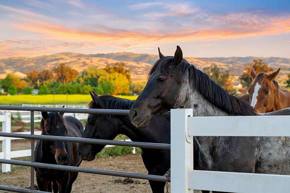 Nestled within the San Francisco Bay Area, this breathtaking 5-bedroom, 5-bath, 3,770 sq. ft. estate offers the perfect blend of luxury and country living on 5.14 private acres. Perched above the equestrian facilities, the home boasts panoramic views of horses, pastures, and the Livermore hills. The main level features a spacious formal living and dining area, an open-concept kitchen and family room with vaulted ceilings, and seamless deck access for entertaining while enjoying stunning sunsets. The luxurious primary suite includes a spa-like bathroom with a jacuzzi tub, a two-sided fireplace, and direct deck access. A bonus lower level, with its own fireplace, bathroom, and patio access, offers endless possibilities for gatherings or a potential ADU. Equestrian facilities include eight cross-fenced pastures, a 160x280 outdoor arena with all-weather footing, 4-stall barn, tack room, hay barn, and a round pen--all designed with the horse enthusiast in mind. Located on a private road, this property is just minutes from Livermore's vibrant downtown, renowned wineries, and convenient freeway access.