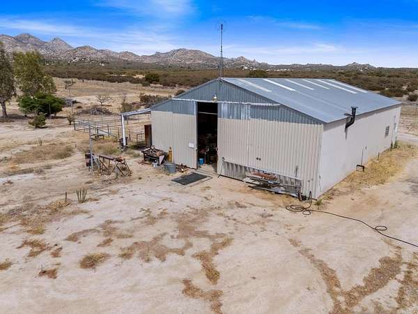 Set on spacious, level grounds in the serene backcountry of Ranchita, this property offers the ideal blend of comfort, functionality, and rural charm. The single-story manufactured home features approximately 1,904 sq. ft. with 3-bedrooms and 2-bathrooms. A recorded 433A is on file, ensuring security for financing and long-term use. The centerpiece of the property is the incredible 60'x40' metal barn with overhang and stalls--well-suited for equestrian use, storage, or workshop projects. Inside the barn is a 300+/- sq. ft. studio apartment, adding flexibility for guests, extended family, or creative space. Additional improvements include hay storage, a well shed housing a private water supply, carport with shaded area, cross-fenced pastures, animal pens, stalls, and a round pen. Owned solar panels offset grid-tied power use, promoting a sustainable lifestyle. A 10,000-gallon water tank with fire hydrant and an electric gate provide both convenience and peace of mind. Surrounded by eucalyptus, pine, chinaberry, and fruit trees including apple and fig, the grounds reflect the natural beauty of the area. With sweeping views of the surrounding mountains, this property captures the quiet charm of Ranchita while offering excellent accessibility. Just a short drive from Julian, Santa Ysabel, and Borrego Springs, with convenient routes to metropolitan San Diego and Temecula, the location is well-situated for both retreat and recreation. Known for agriculture, open spaces, and outdoor pursuits, the region offers a lifestyle that is truly unique.