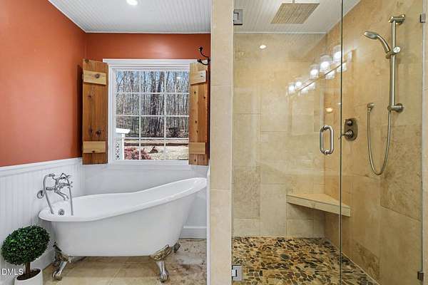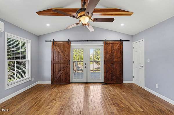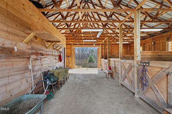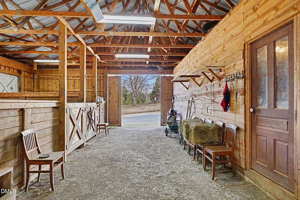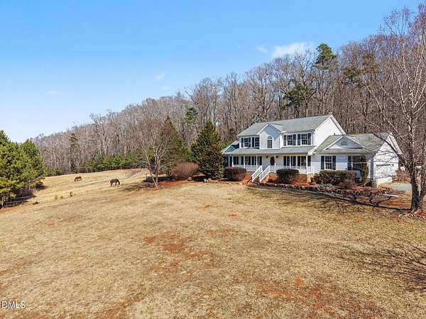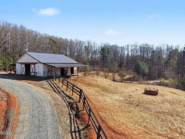 Rare equestrian mini-farm on 8.2 scenic acres in Chatham County, ideally located between Pittsboro and Siler City with convenient access to Durham, Chapel Hill, Raleigh, Apex, and Cary. The 36x36 barn (2010) features three 12x12 stalls, dual 10-ft lean-tos, tack room with lounge area, concrete wash rack, and three separately fenced pastures for rotational grazing. The 2,347 sq ft home offers 3 bedrooms and 2.5 baths with major 2019 updates, including a custom kitchen with alder cabinetry, granite countertops, large island, and slate floors. The renovated primary suite includes decorative beams, barn doors, heated bath floors, private deck, and mini-split HVAC. Cozy office with cast iron propane stove. Additional updates: 2026 new carpet on 2nd fl, 2023 downstairs HVAC, tankless propane water heater, generator wiring, updated exhaust fans. Enjoy the 38-ft covered front porch, expansive back deck, above-ground pool (new liner, pump, filter 2024), and raised garden beds. Peaceful country living with easy access to the Triangle.