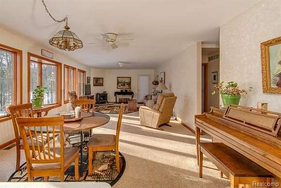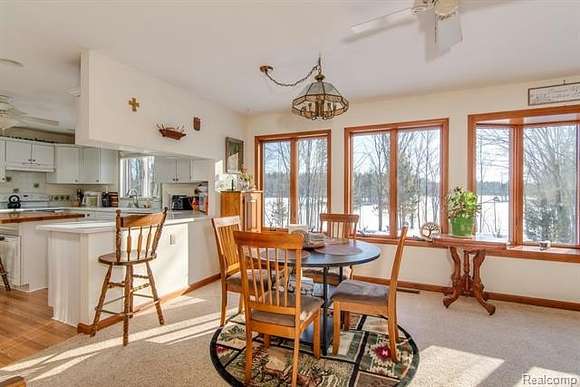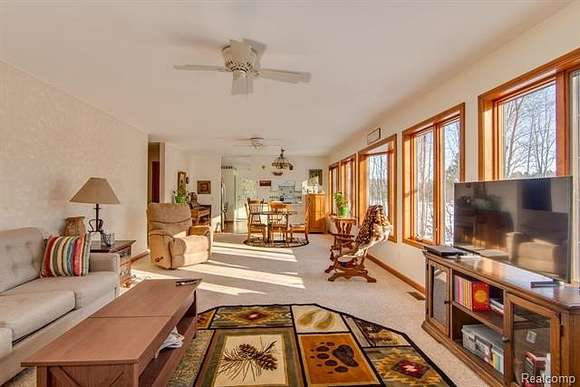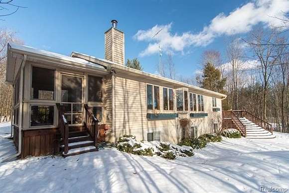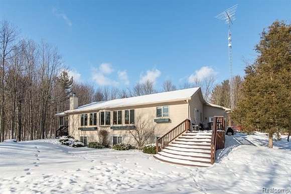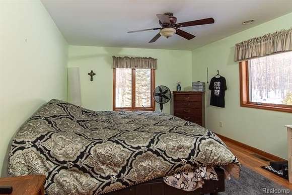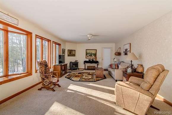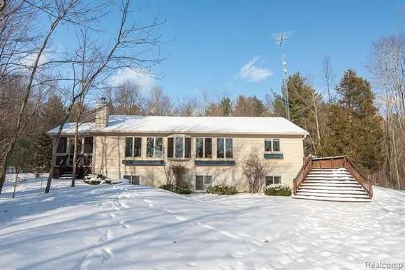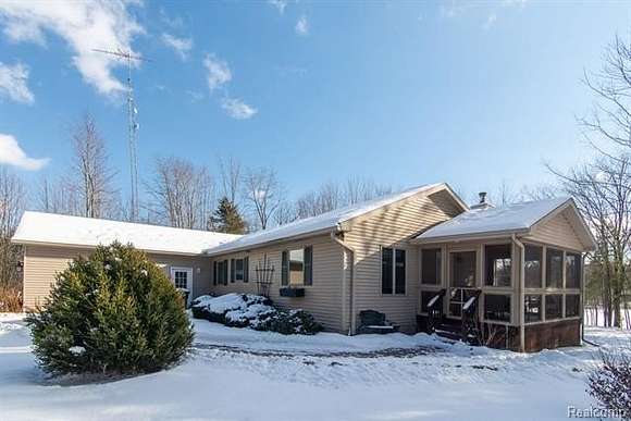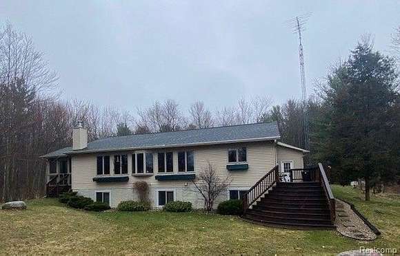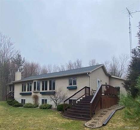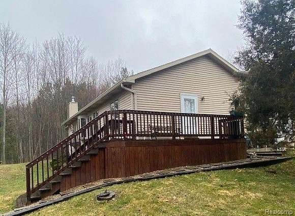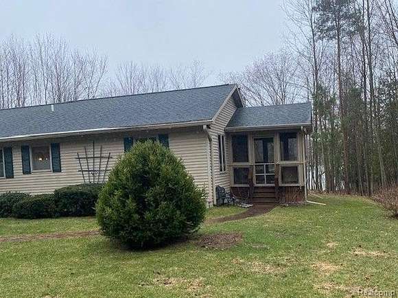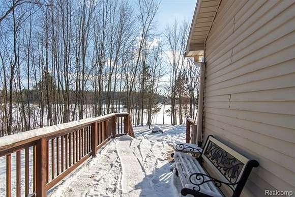 This is a beautiful 10 acre property 90% wooded acreage with nearly 2000 feet of frontage on All Sports Evergreen Lake. This beautiful Ranch style home with full finished basement holding 3 additional bedrooms and another full bath. Several Daylight/ Egress windows face the beautiful countryside overlooking the lake. The frontage consists of a gorgeous sandy beach for your enjoyment. The home has a 24x24 attached garage and 18x20 additional pole barn for storage. There is a Pontoon Boat, a Bass Boat, a 4x4 Trail Machine as well all of the household furnishings could be easily included in the sale. Deer and turkeys spend a lot of time on the 10 acres of woods. Rare find in Tuscola County 10 acres with a beautiful home with full waterfrontage on an all sports lake. Don't pass this by. Home has a Geothermal heating and Cooling system making monthly expenses very low. Pre Approval or Proof of Financial Viability are requested prior to setting a showing appointment. Please DO NOT TRESPASS. This residence is occupied and there are surveillance cameras in place. A Licensed Real Estate Agent must accompany any visitors.