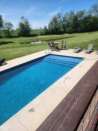 Est $3,234/moBeautiful home located on 4.62 +/- acres (per PVA). Open floor plan with full finished basement. 3 bedrooms and 2 baths, with addition bed and bath in the finished basement. There is a 2-car detached garage with open bar area, bathroom, upstairs storage and walk out to an in-ground pool. In addition, the property has a fully stocked pond and storage building.
