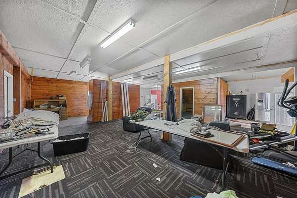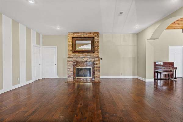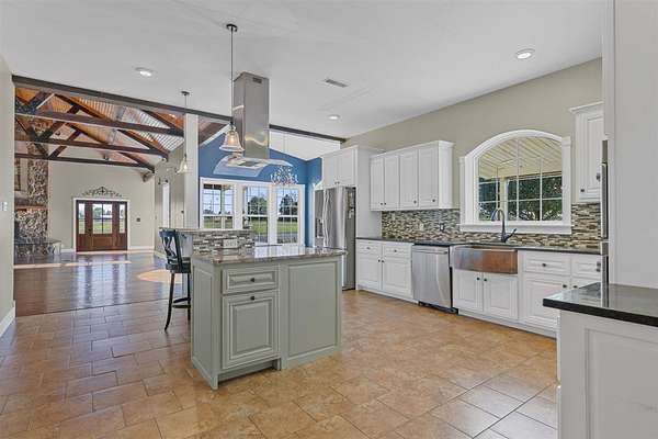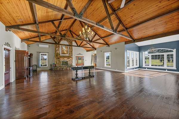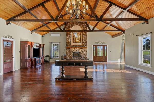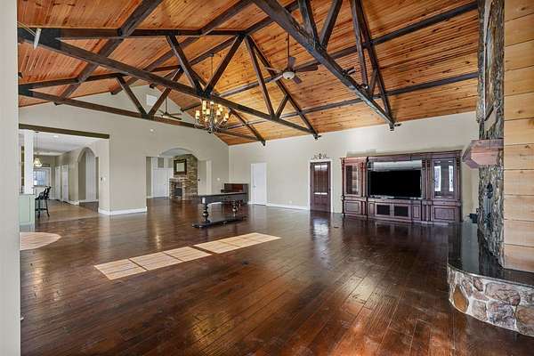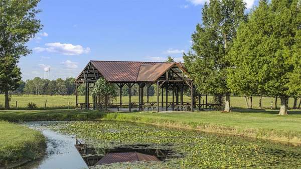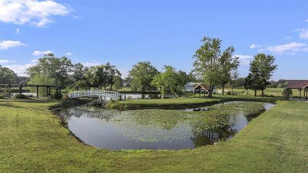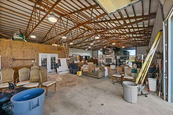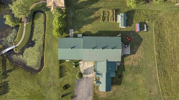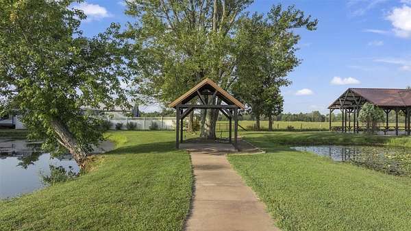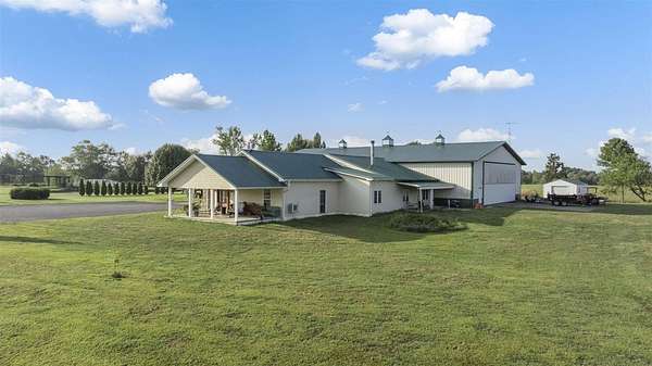 - Barn, Concrete Walks, Covered Front Porch, Covered Patio, Exterior Lights, Landscaping, Mature Trees, Out Building, Outdoor Lighting