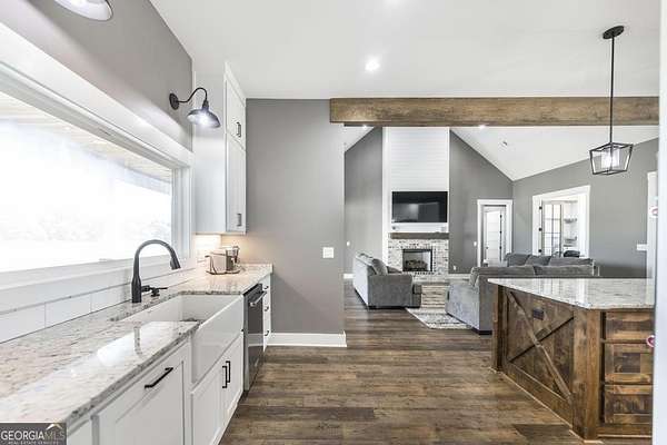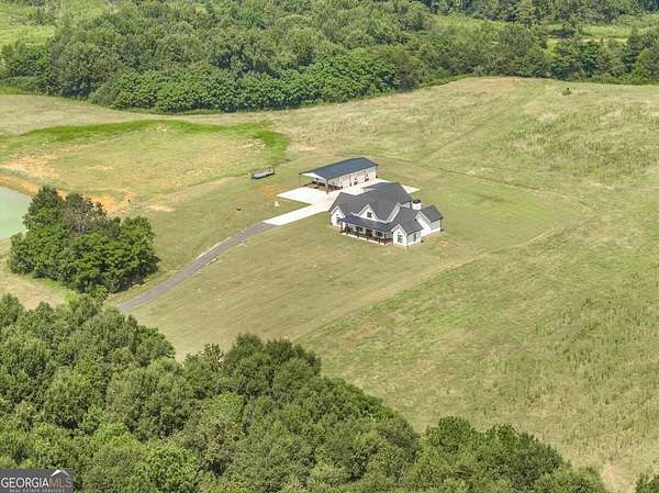 Stunning 2023 Custom- Built Home- 5 Bed / 4.5 bath + Office + Shop! Welcome to this beautiful custom-built home, offering the perfect blend of luxury, comfort, and functionality. From the inviting rocking chair front porch to the expansive open-concept living spaces, every detail has been thoughtfully designed. Inside, the gourmet kitchen boasts granite countertops, large center island, farmhouse sink, custom cabinetry, built- in microwave (convection), wall oven, and gas cooktop-all framed by a picture window above sin k overlooking views of the backyard. The living room features a gas fireplace with brick surround and shiplap accent wall,and a 4-panel sliding door that opens to the covered outdoor living space with wood burning fireplace and tongue-and-groove ceiling. Each of the 5 bedrooms and 4.5 baths are beautifully appointed. Bathrooms feature porcelain tubs,tiled surrounds, and glass shower doors. The primary suite includes 2 large vanities with granite countertops,custom walk in shower and 3rd vanity for makeup. Large walk in closet with custom built-in drawers and cabinetry. Additional interior highlights: 8' interior doors throughout, LED-lit staircase,Cat 5 cable, Foam Insulation, Tankless water heater, 3 HVAC Systems, & tinted windows. Step outside to enjoy a spacious backyard, a serene WELL FED stocked pond, 30x50 shop featuring a full bath, custom water filtration system & water softener, separate hot water heater, 15x30 awning, dedicated HVAC, & Insulated garage doors. The property is complete with underground power, soffit outlets, security lighting, gutters and HUNTING & FISHING LAND GALORE to include Deer, Ducks, Dove, & Quail!! Call for your personal tour.