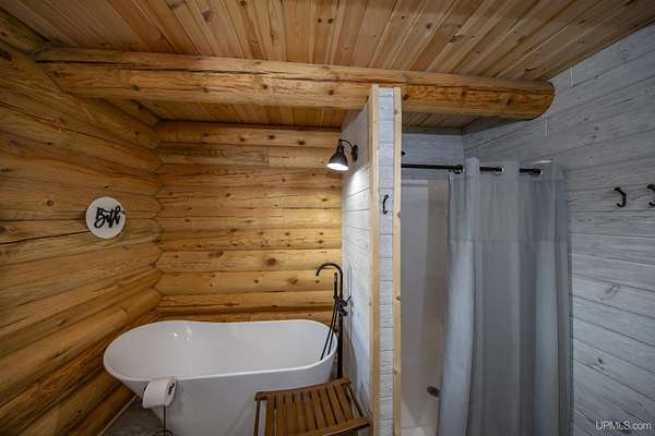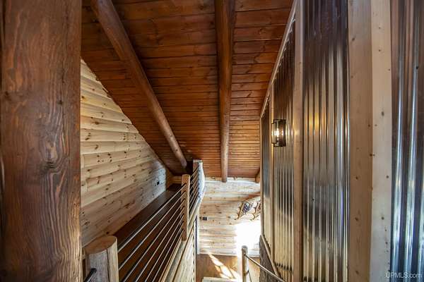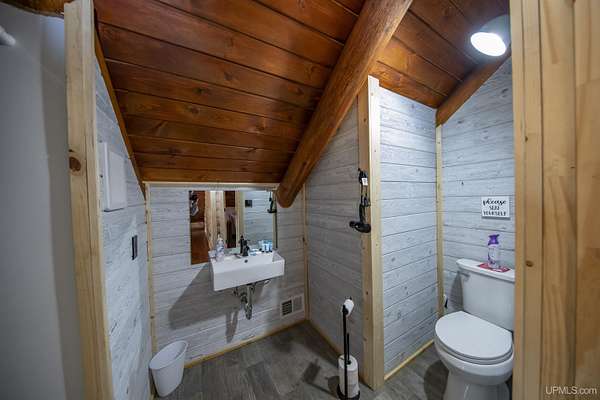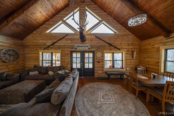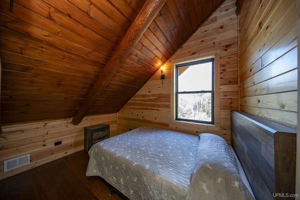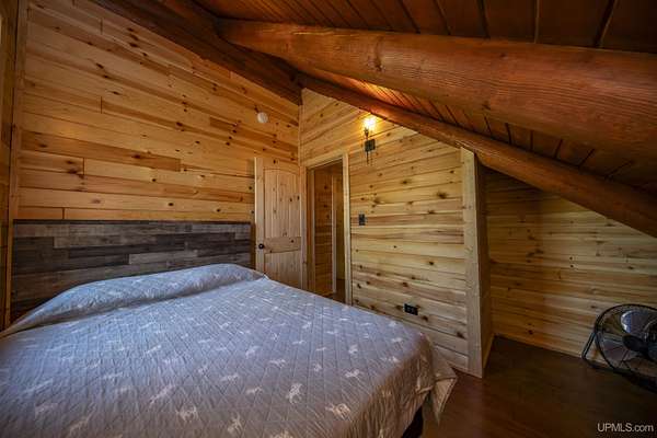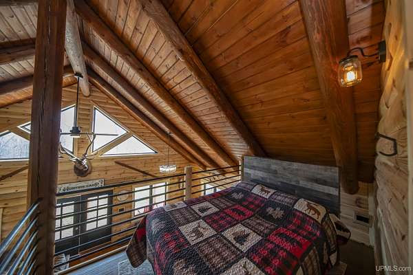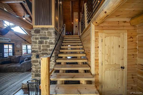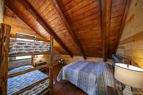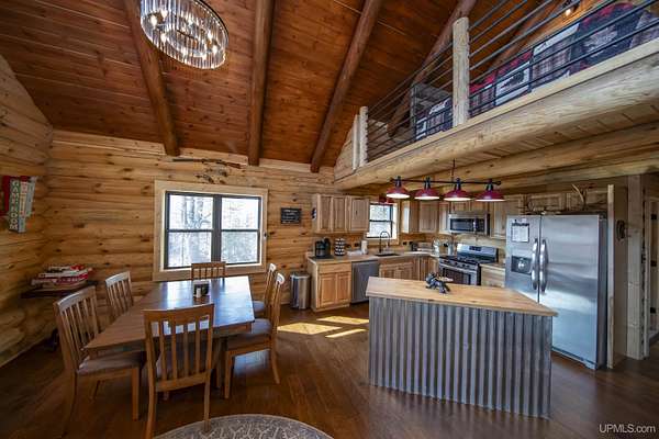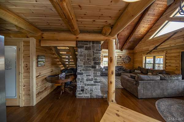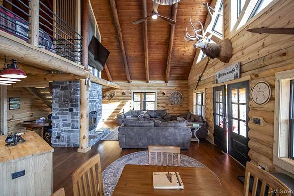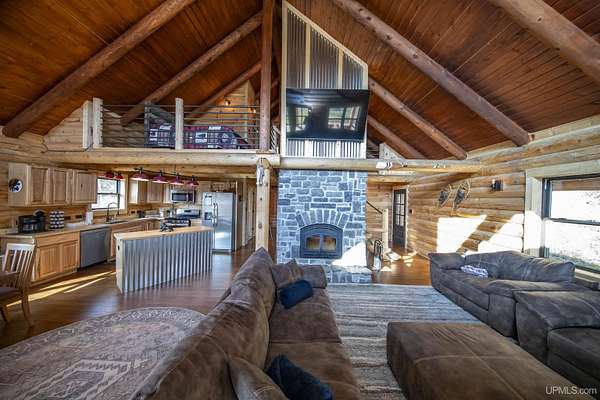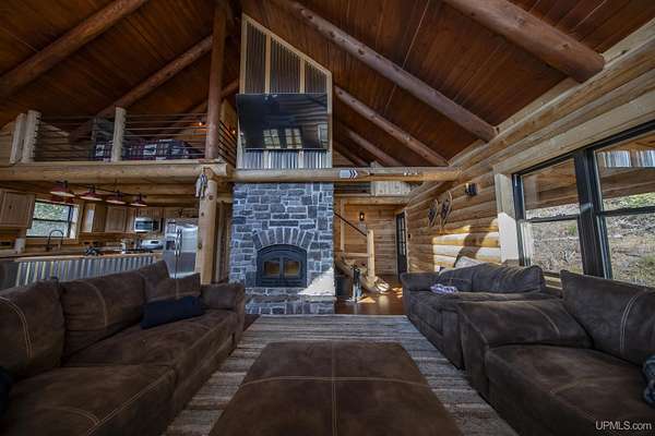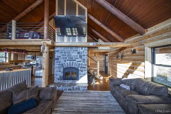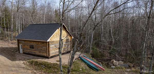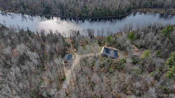 Looking for that dream riverfront property in the beautiful Upper Michigan Northwoods? Welcome to this stunning log home on the Paint River, where 600 feet of river frontage and 5.3 acres of private land await you! This newer-build home offers 3 bedrooms and 2.5 baths, including a convenient main floor bedroom and laundry, as well as a detached 2-car garage perfect for storage. The open-concept kitchen with an eat-in area flows into the living room, showcasing vaulted ceilings and a stone wood-burning fireplace that adds warmth on chilly Northwoods evenings. The well-crafted staircase leads you to a loft area, two additional bedrooms, and a bath, giving everyone their own space. Outside, unwind in the extra large hot tub that is more like a small pool and savor the tranquility, or take a seat on the wraparound porch to enjoy the sounds of wildlife and spectacular starlit skies. Easy river access makes launching kayaks or casting a line effortless. The property includes all furnishings and appliances, ready for year-round living, a second home, or even as an investment property. The current owners have successfully used it as a rental, with bookings already set through the new year and beyond. Surrounded by rivers, lakes, and streams, and close to towns and schools, this is an opportunity you don't want to miss!