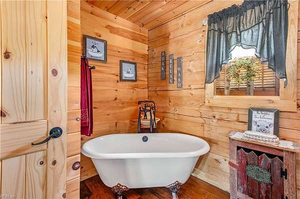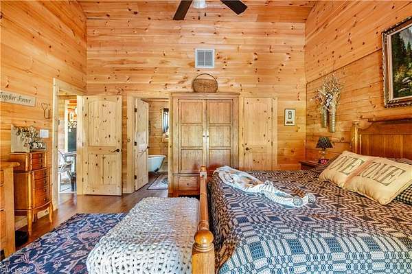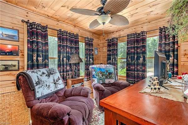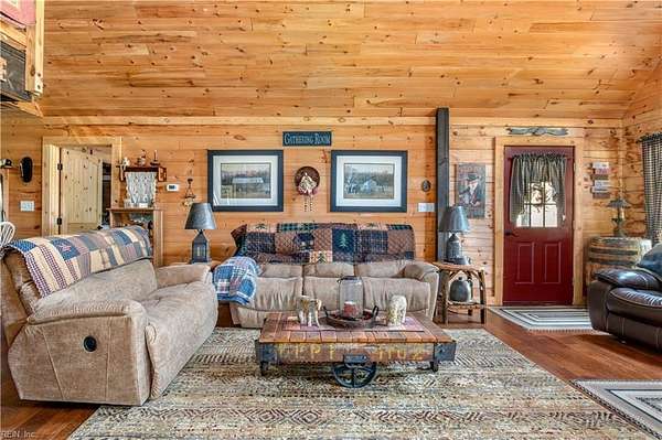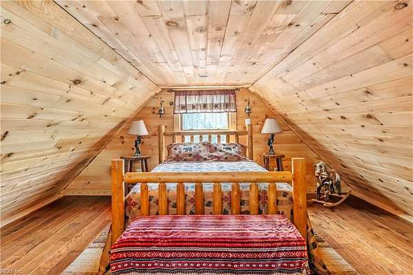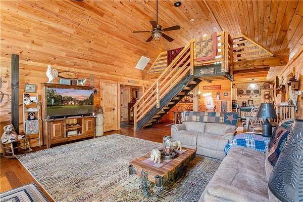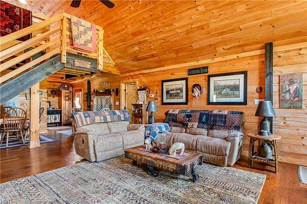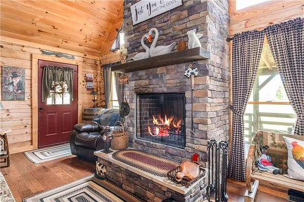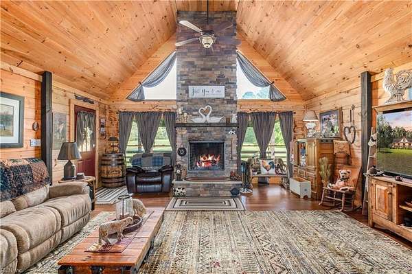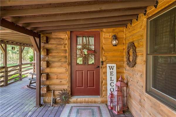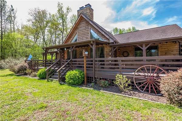 Set on 9.59 acres, this log home offers a private, peaceful setting with room to spread out. Inside, you will find an open-concept layout featuring vaulted ceilings and a stunning floor-to-ceiling wood-burning fireplace in the main living area. The galley kitchen flows easily into the dining and living spaces, creating a comfortable and functional layout. The home offers two bedrooms plus a loft currently used as a third bedroom, along with an additional room that provides flexible space with a convenient laundry closet. The spacious primary bedroom is a true retreat, and the primary bath features a beautiful clawfoot tub. Outside of the home, there is even more to enjoy! There is a large front porch, relax by the fire pit, the above-ground pool and hot tub. The open land offers endless possibilities for recreation, gardening and animals. Don't forget the detached 2-car log garage! If you’ve been searching for a log home with acreage and a true country feel, this property delivers.
