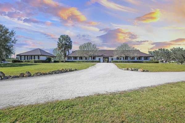 Updated in 2023, this 14.63-acre farm with 20-stall center-aisle barn has 2 tack rooms, a covered patio overlooking the 100' X 213' covered riding arena with GGT footing, mirrors & observation platform. There is also an outdoor riding arena with mirrors and new gazebo. Other features include: a round pen, a 51' X 86' storage garage, detached staff house with two apartments with 4-bedrooms total. The owner's residence has 4-bedrooms plus an office, private pool & fenced backyard with water views. The home was completely updated from top to bottom in 2023. The kitchen boasts double islands with waterfall edge quartz counters and oversized walk-in pantry. This equestrian estate offers everything a serious equestrian could desire!