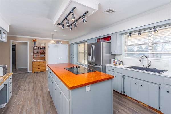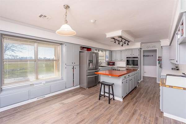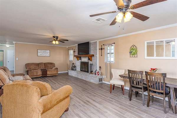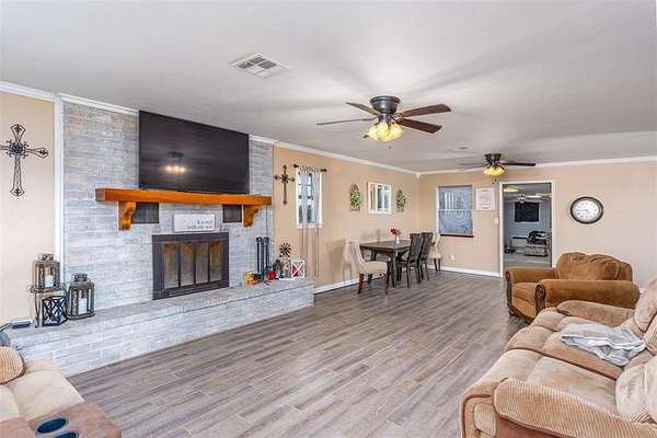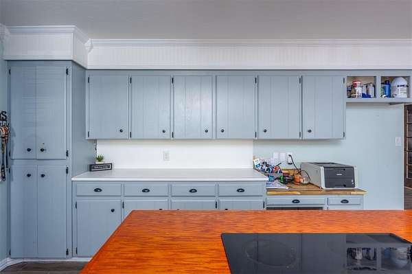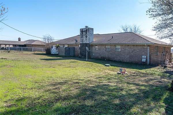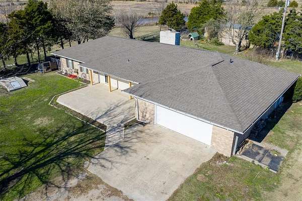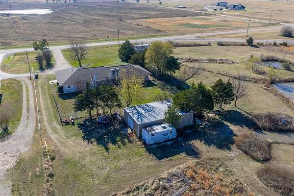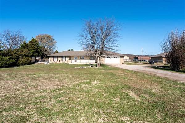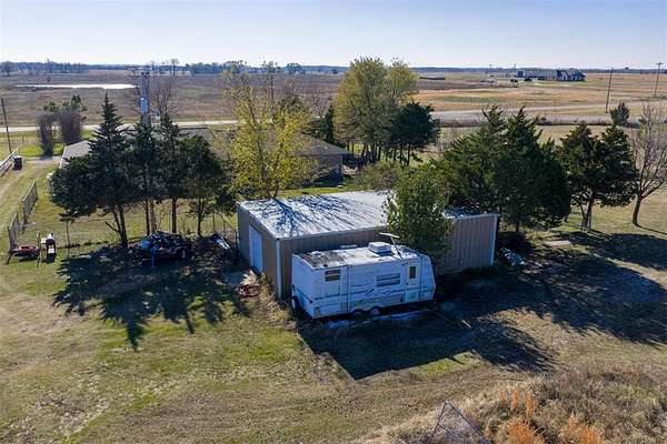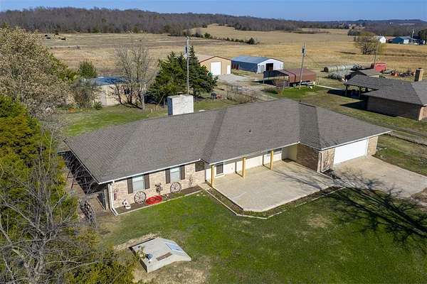 Charming 3 bed/2.5 bath brick home located just a couple of minutes from the town of Okemah on five acres m/l with all paved roads leading to the property. This updated home features a spacious kitchen with abundant cabinetry and countertops, a large pantry, and an island with a built-in cooktop and built-in oven. The spacious living room offers a beautiful wood-burning fireplace that serves a nice focal point. The enclosed porch area offers a versatile flex space perfect for an additional living area, office, hobby room, or playroom. The home includes central heat and air and a storm cellar for added peace of mind. The home has had many updates, including newer tile flooring, some fresh interior and exterior paint, and HVAC in 2016. Outside, you'll find a 40' * 24' metal-framed shop building with a concrete slab, electric, an overhead door, and a separate walk-through door, along with a pond and a 50-amp RV hookup. The home also has an oversized attached garage with a storage room inside for extra space. With no HOA and no restrictions, this property provides excellent flexibility for rural living, a hobby farm all close to conveniences of town. Conveniently situated between Tulsa and Oklahoma City with easy access to Interstate 40, the property is served by East Central Electric and Ecolink Fiber internet and Okfuskee County Rural Water District 3. Buyer to verify all information.