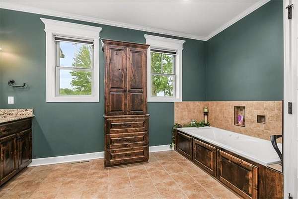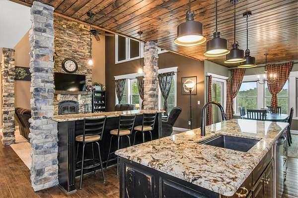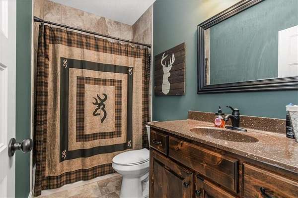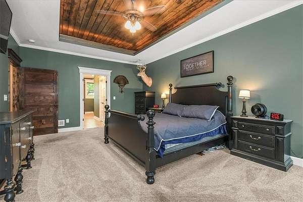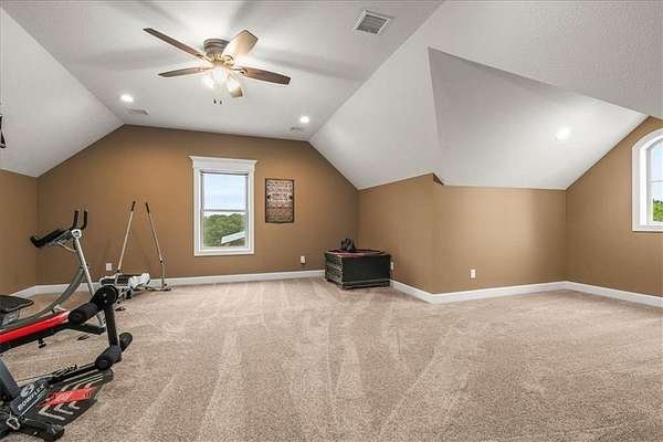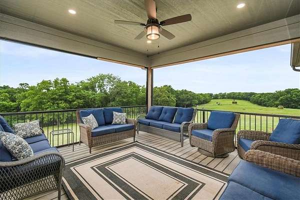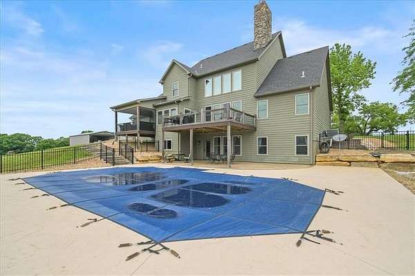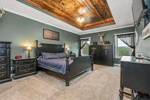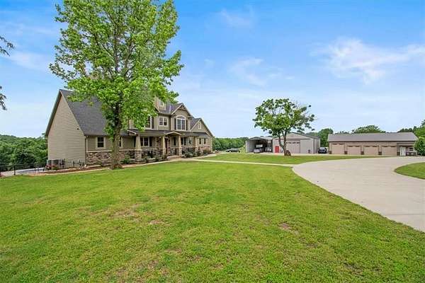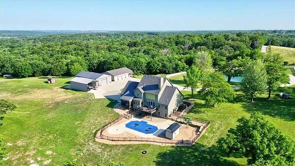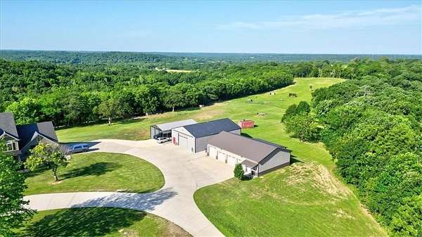 Discover your private sanctuary at this Oak Grove Acreage, a stunning 42-acre property offering ultimate seclusion and breathtaking views for miles. This barely five-year-old, 6,000 sq ft custom-built home prioritizes comfort and space with a main-level primary suite and four more bedrooms, each with its own ensuite bath. Enjoy an upstairs bonus room (or 6th bedroom) and a fantastic walk-out basement featuring a home gym, game room, living room, and storm shelter - all with direct access to your refreshing pool.