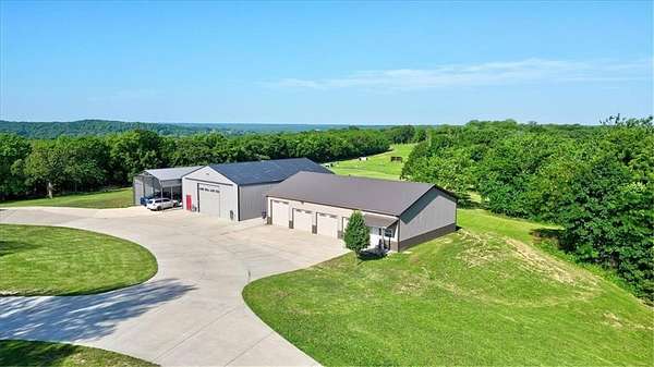 Beyond the home, you'll find two 60x40 shops, both equipped with 200-amp panels, ready for all your equipment. The diverse landscape offers a mix of open pasture and wooded trails, perfect for ATV/UTV adventures, animal care, fishing in two stocked ponds, or hunting incredible deer and turkey. This is more than a home; it's a complete lifestyle.