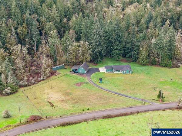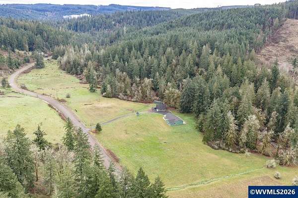 Est $5,142/moPrivate 27-acre Molalla retreat suited for buyers seeking land, flexibility, and future potential. Features a 4-bedroom, 2-bath home, attached garage, detached garage with loft conversion potential, and a creek running through the property. Ideal for small business owners, hobby farmers, or anyone needing space, outbuildings, and room to grow.
