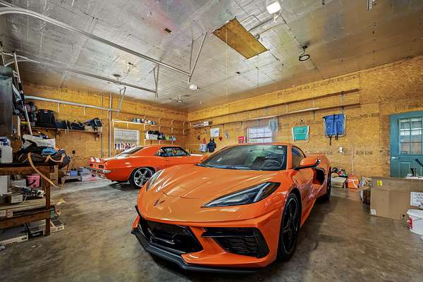 - Attached, Concrete, Driveway, Garage Door Opener, Garage Faces Rear
