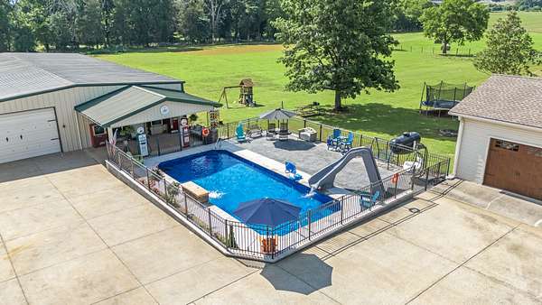 Looking for country living in the heart of Bedford County? This gorgeous property has features that will meet the whole family's needs. Interior features include 3 bedrooms, 2.5 bathrooms, an office, a large kitchen, an oversized owner's suite, and a cozy living room with a gas fireplace. Outside you will find a rocking chair front porch, an attached 2 car carport, an attached 2 car garage, a newly installed 16x32 inground pool, a pool room with bathroom attached to the 50x90 shop, and a 30x50 barn with garage doors. This property has a gated entrance, a fully fenced yard, and a fully stocked pond to give you the whole country seclusion feeling.
