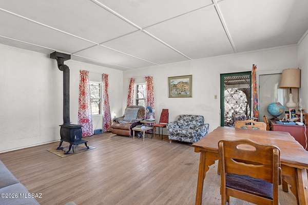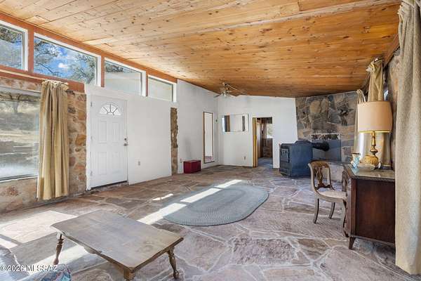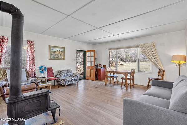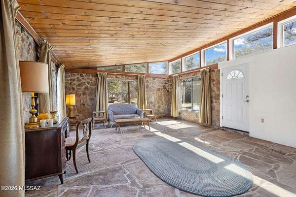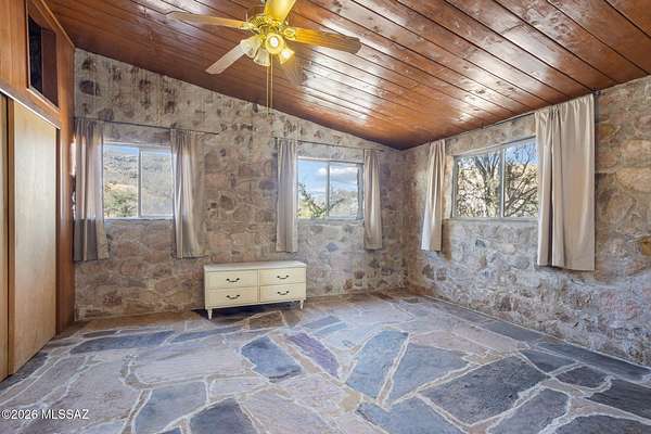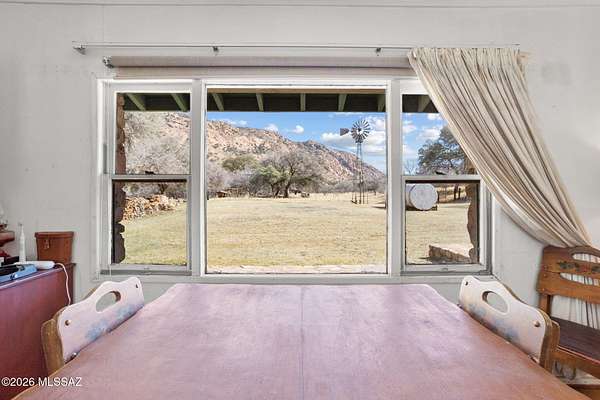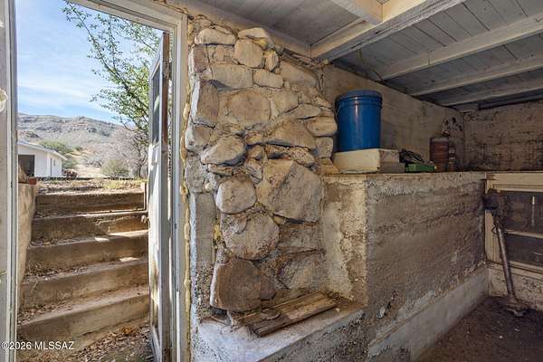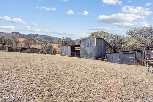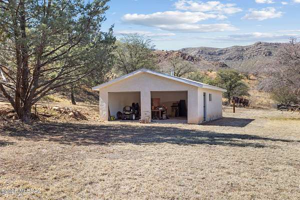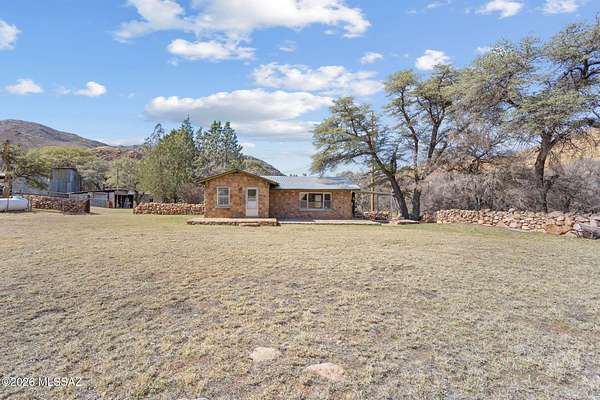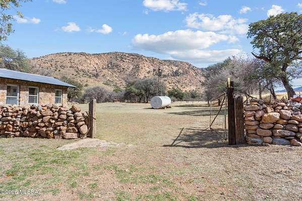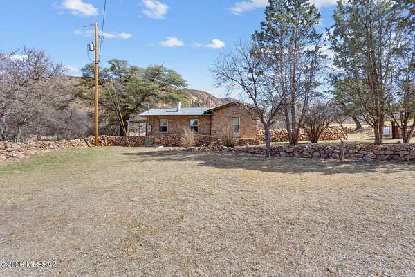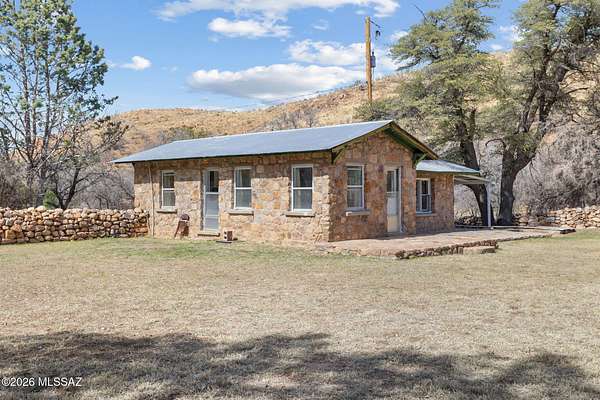 Nestled among the breathtaking Mule Mountains just five miles west of charming Bisbee, this magnificent 168-acre historic mountain ranch is a rare and remarkable offering that captures the timeless spirit of the American West. Known as Rocky Creek Ranch, the property greets you with a lush canopy of mature trees as you cross over Banning Creek and approach a stunning landscape featuring three seasonal creeks, dramatic waterfalls, towering rock formations, and rolling grassy meadows of Coastal Bermuda and native grasses that stretch across flat, undulating, and mountainous terrain alike. Two historic residences - the warmly updated Homestead House and the charming stone-walled Rock House, each with updated 200-amp electrical service - offer comfortable living accommodations totaling over 2,500 square feet, while a third structure, The Milk House, is in the process of being converted into an inviting studio home. The property is exceptionally well-equipped for agricultural and equestrian pursuits, featuring covered corrals, two livestock pens with a steel pipe squeeze chute, a large chicken pen, two windmills, four registered wells, two water storage tanks totaling 12,500 gallons, two septic systems, and surface water rights. Multiple outbuildings, a workshop, and covered parking for up to seven vehicles round out the working ranch infrastructure. Producing pomegranate bushes, walnut trees, and magnificent shade trees including Alligator Juniper, Black and White Oaks, and Mesquites add beauty and character throughout. With possible mineral rights, highway frontage on both sides of Highway 80, and roughly 2.5 linear miles of perimeter, this extraordinary property offers privacy, versatility, and an unmatched connection to the natural landscape of southeastern Arizona.