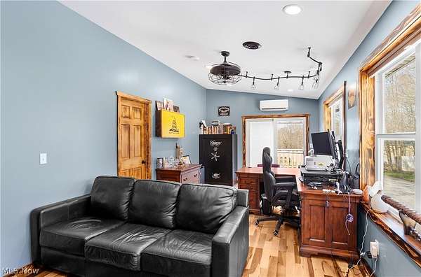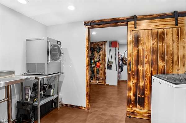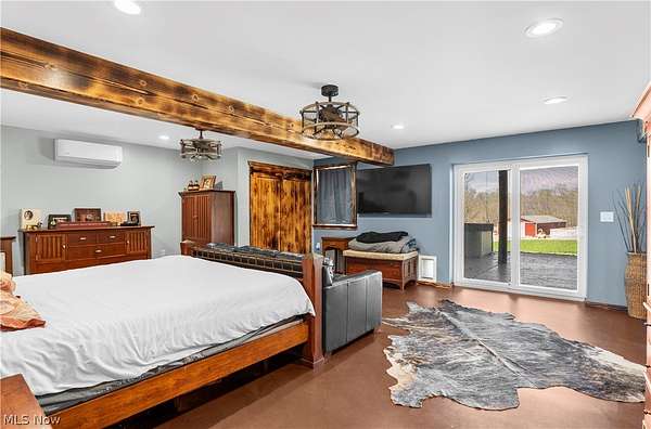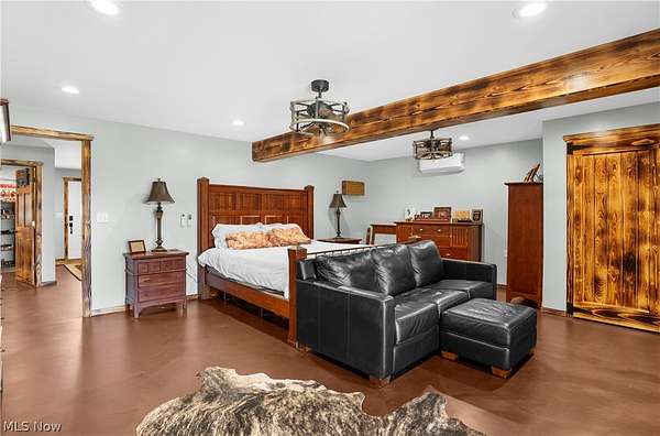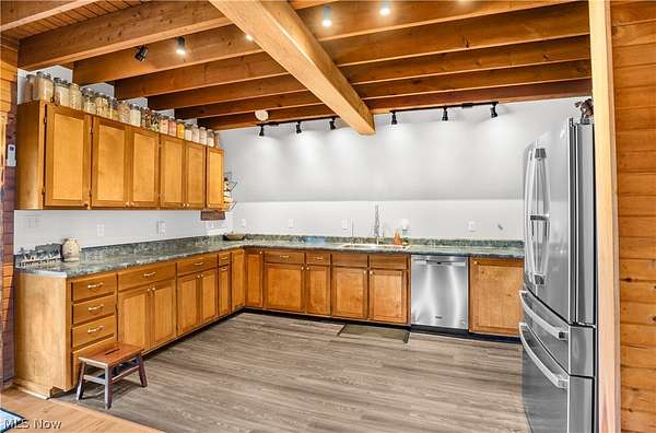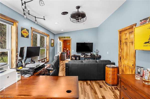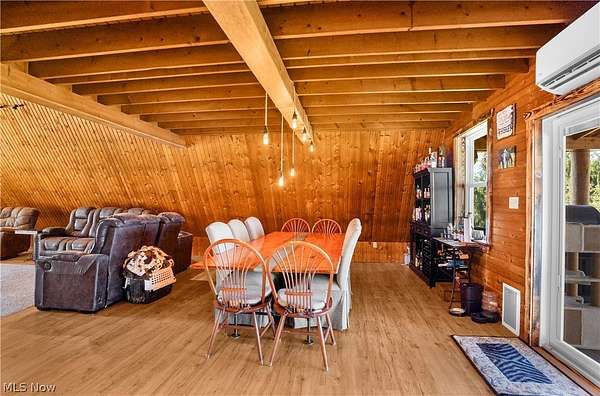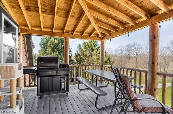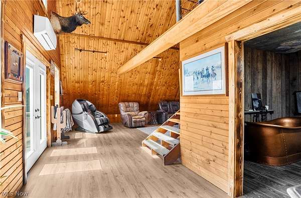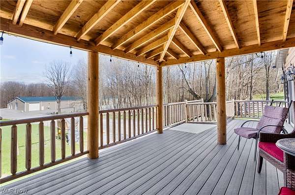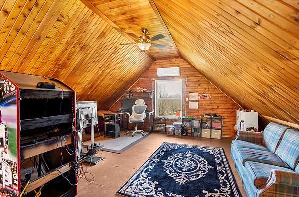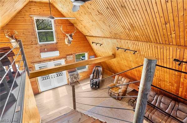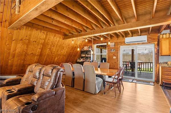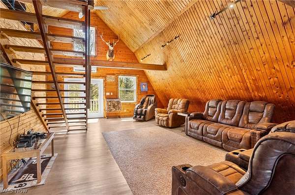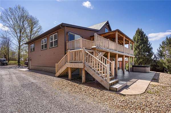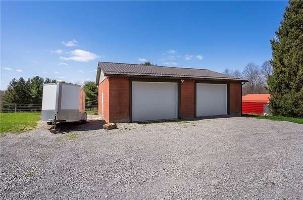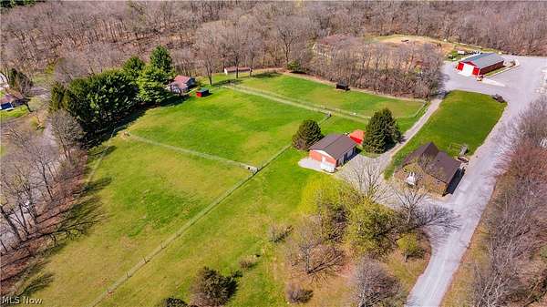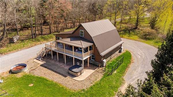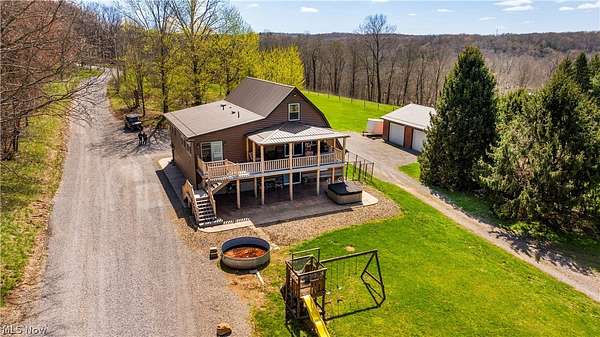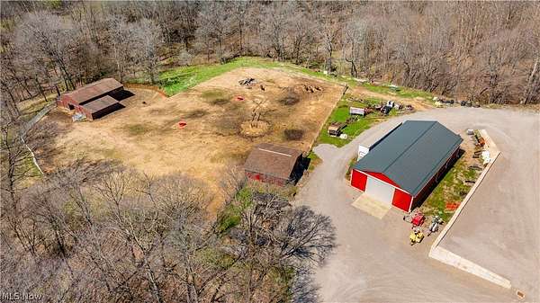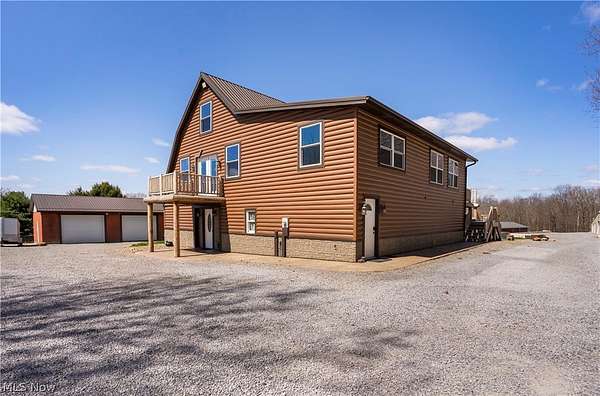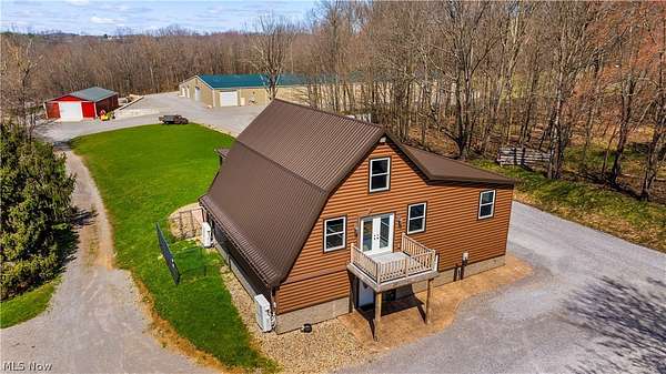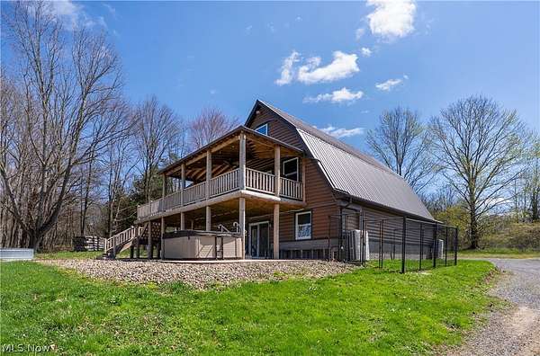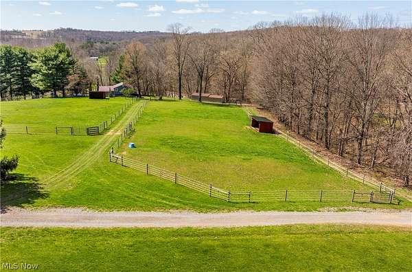 Welcome to an exceptional equestrian estate at 37912 Saltwell Rd in Lisbon, Ohio, where premier horse facilities meet a beautifully designed cabin-style residence on expansive acreage. Built for serious horse enthusiasts, trainers, or investors, this turnkey property offers versatility, function, and long-term potential. The centerpiece is the impressive 125x300 indoor horse arena, a rare find, designed for professional use with water access throughout, 600-amp electrical service, a commercial-sized kitchen, and bathroom facilities. Ideal for year-round training, boarding, clinics, or events, this space can immediately support income, producing operations or elevate any equestrian program. Spanning approximately 40 acres, the property includes nearly 10 acres of established pasture along with open, usable ground for expansion, riding areas, or additional structures. The setting offers privacy, scenic views, and the space needed to operate a horse property at scale. Cabin-style home blends rustic charm with modern comfort, featuring wood-look vinyl siding and a durable metal roof. Inside, an open layout connects the kitchen, dining, and family room areas, highlighted by soaring vaulted ceilings and an airy, inviting feel. The kitchen offers ample cabinetry and functionality, flowing seamlessly into the main living space. Step out onto the back deck balcony overlooking your private oasis, perfect for relaxing or entertaining. The home offers 4 bedrooms, 3 full bathrooms, a dedicated office area, and a workout/rec room, making it extremely versatile for a variety of lifestyles. Custom bathrooms feature high-end finishes, including a standout copper soaking tub. Additional improvements include a 40x80 insulated, heated pull-through garage with a half bath and a separate garage with two 4-post lifts and radiant in-floor heat. With strong potential for commercial use for storage, equipment, or a live/work setup, this rare property offers endless possibilities.