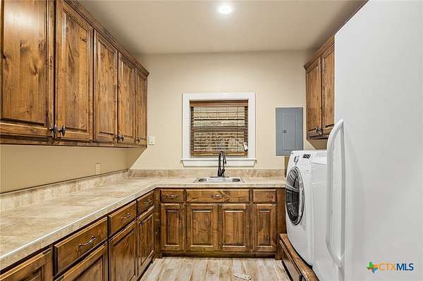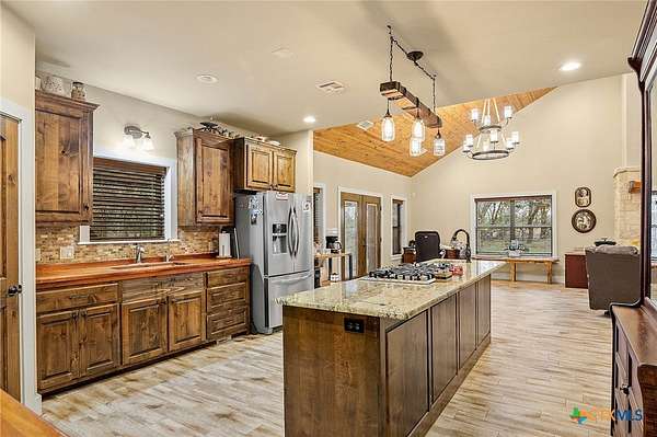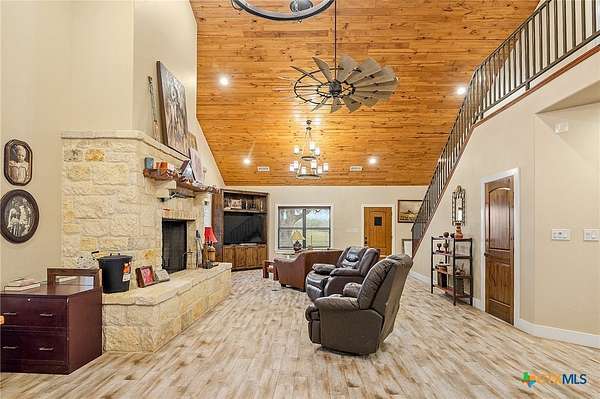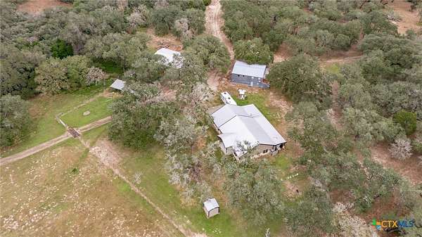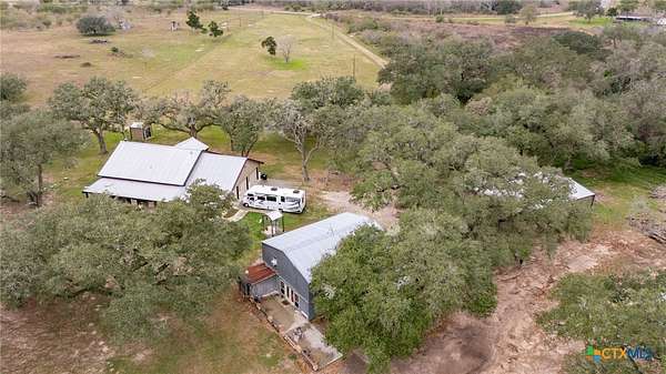 Nestled on 13.73 acres along FM 446 in Victoria, Texas, this property is a perfect blend of rustic charm, modern amenities, and natural beauty. Surrounded by sprawling oak trees, this private retreat is teeming with wildlife, offering a serene escape from everyday life. The centerpiece of the property is a beautifully designed barndominium featuring an open floor concept that seamlessly combines space and comfort. The high-ceiling living room is expansive and inviting, perfect for family gatherings or entertaining guests. Attached is a spacious three-car garage, providing ample storage and convenience. Step outside to discover an amazing outdoor kitchen, ideal for hosting cookouts or simply enjoying the peaceful surroundings. A secondary house on the property adds versatility, making it ideal for extended family, guests, or potential rental opportunities. Additionally, a 40x55 shop, complete with 10-foot and 15-foot porches, offers unmatched functionality for hobbies, storage, or workspace needs. Whether you're looking for a peaceful retreat, a family compound, or a place to embrace the great outdoors, this remarkable property provides endless possibilities. Don't miss your chance to own this one-of-a-kind slice of Texas.