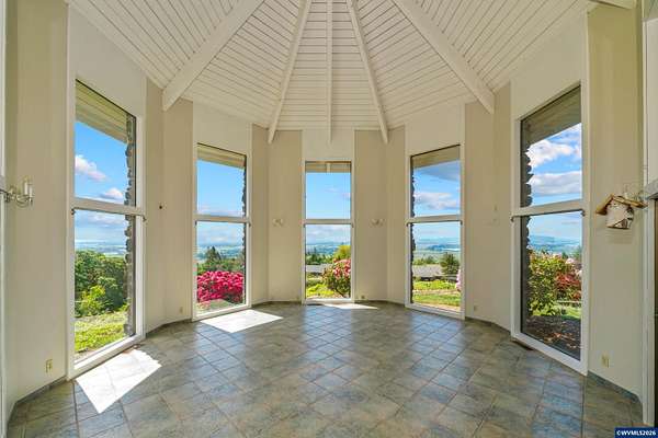 Est $11,678/moChinook Estates, built in 1978, HOA $375 per year. 5.82 acres, includes vegetable garden area. Unparalleled 180 degree views of Cascades, Coast Range, Willamette River & beautiful valley below. Apx. 5379 SF, 4 bds, 4 full & 2 half baths, magnificent turret rm, huge bonus/game/theater/exercise rm or possible separate living area with full bath. Large, private office. All the quality you would expect, stone, hardwood, tile & carpet. Expansive decks with magnificent views. Up to 6 car garage.