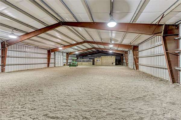 Equestrian facilities are second to none, including a 7,200 sq ft indoor arena with 4 stalls, tack room, hay storage, two 10’ drive-through doors, electric, water, insulation, and plumbing for a heater. The property also features 3 pastures, corral, and a livestock water permit.
