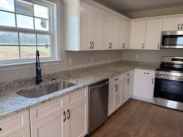 Make this new construction your dream home! Gorgeous, spacious 3-bedroom brick home with 2 full baths and 2 car garage on a level 1.5-acre lot! Lots of closet space. Soft close cabinets with granite. Stainless appliances. Custom closets. Vaulted ceiling in living room. Open floor plan. Double tray ceiling in master with decorative shiplap. Master bath has separate tile shower and garden tub. Recessed LED lighting. Covered front porch features cedar posts and back porch with additional patio. Concrete driveway. Enjoy the privacy! 5 min drive to Henry Horton Park. A must see! Call today!