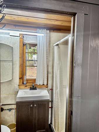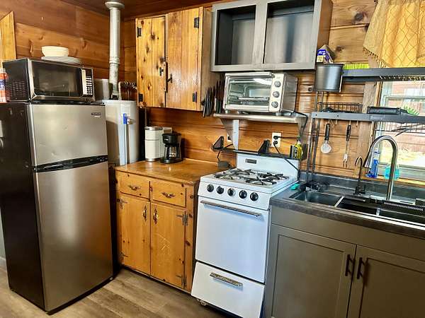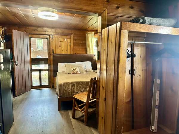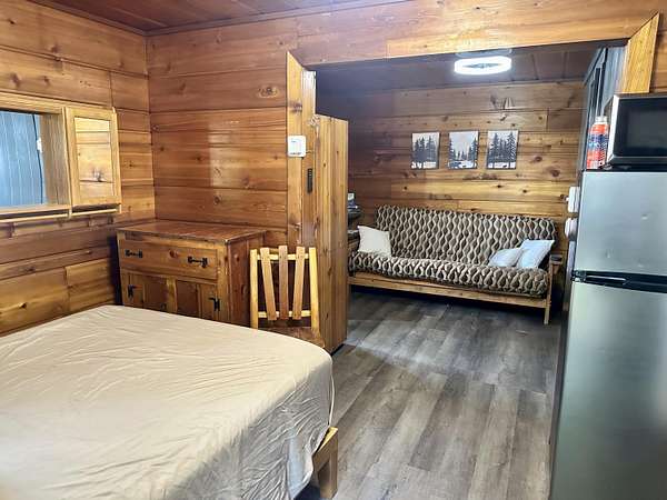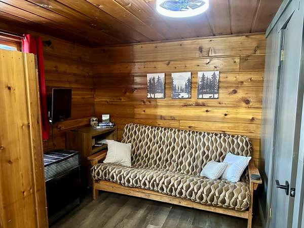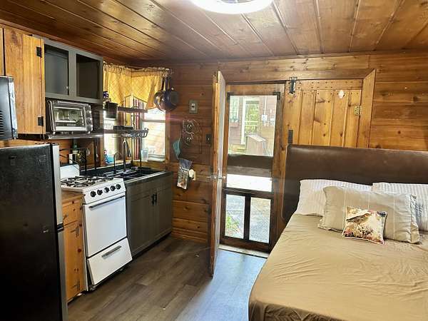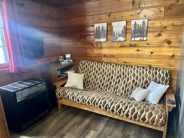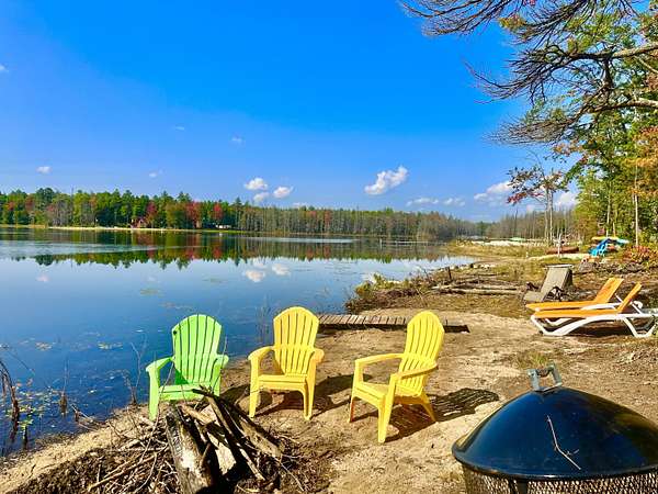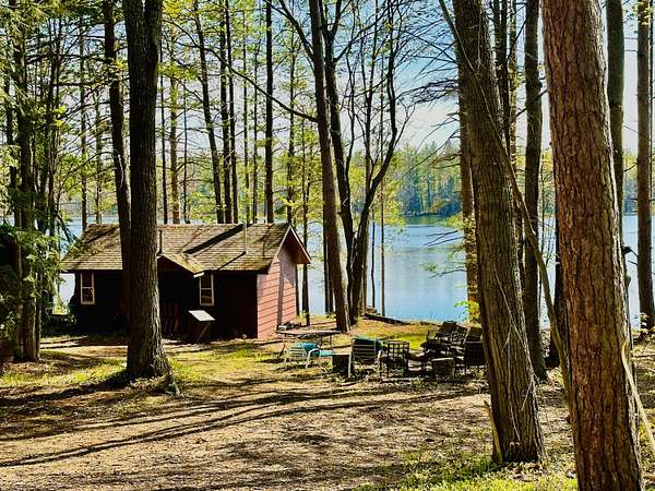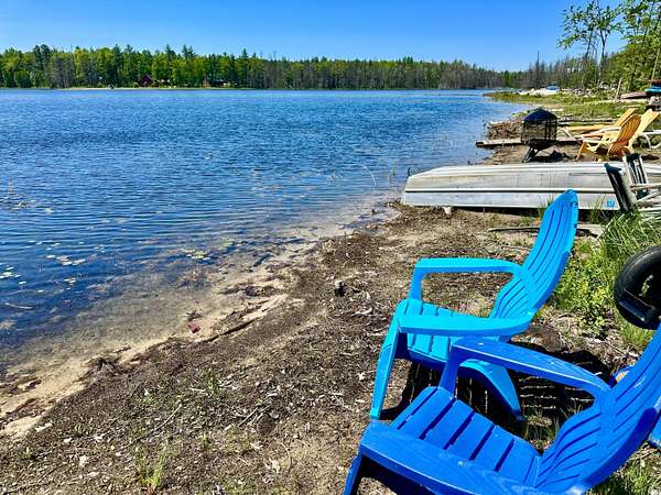 DREAM up north Lakefront Cabin with 100' of natural firm sand beachfront on a hidden lake connecting to Lake Manuka. Nearly an acre of woods with circular driveways and plenty of parking for ATV's, camper and all your toys! Tons of local woodland trails and nearby county/state trails. Serene neighborhood has mostly log homes & cabins. Newly renovated with luxury waterproof vinyl plank flooring, new bath and kitchen, fixtures and lighting with remote control ceiling fans. Great water pressure, drinking quality. Very efficient to run, less than 100/mo for heat & electric year round. Virtually all plumbing and septic is new. Easy to close up, easy to rent can bring in up to 24,000/year. Lot lines and utility.splits to be finished shortly. If con.v.m. sep.well must be inst pre-clos