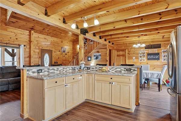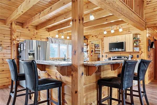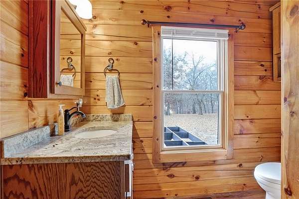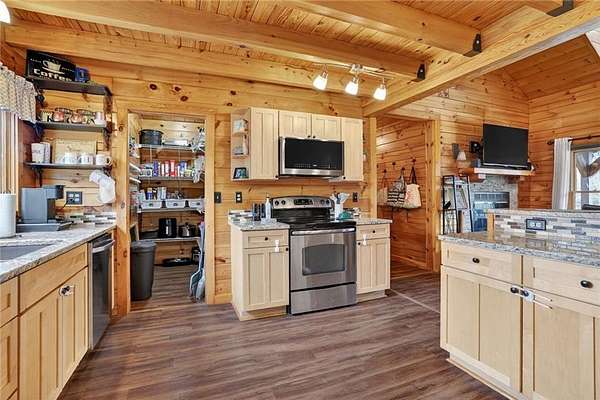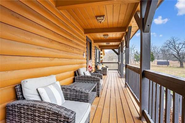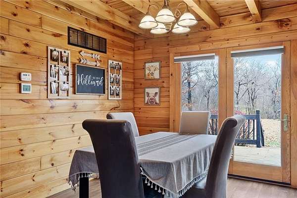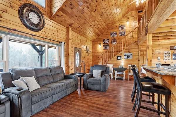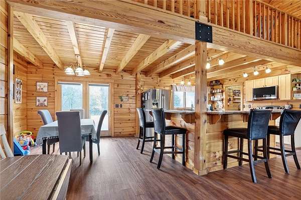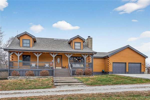 Secluded Log Home Retreat on Wooded Acreage with Abundant Wildlife on 9.5 acres Experience true country living in this stunning log home, offering the feel of a private getaway while providing all the comforts of a primary residence. Surrounded by mature woods, scenic views, and frequent wildlife sightings, this property delivers the peaceful, outdoor-focused lifestyle so many seek. Inside, the home features beautiful woodwork and flooring throughout. The main level includes an open kitchen and dining area, along with a spacious primary suite featuring an en suite bath and a large walk-in closet. The kitchen is designed for both everyday use and gatherings, with a wrap-around island, granite countertops, newer appliances, and a generous walk-in pantry. The vaulted living room opens to the upstairs loft area, where you'll also find a second spacious bedroom and a full bath. The finished walkout basement adds even more living space with a large rec room and two additional bedroom areas, ideal for a variety of uses. Step outside onto the lower patio and take in peaceful wooded views and regular wildlife activity. The acreage offers room to explore, garden, recreate, or simply enjoy nature. A clearing toward the back of the property provides space suitable for outdoor activities such as target practice or other hobby uses. The home is all-electric and features a wood-burning furnace system for supplemental winter heat. Solar panel capability and a whole-house generator connection add extra efficiency and peace of mind. Relax on the expansive front porch, take in the quiet surroundings, and imagine making this unique property your next home.