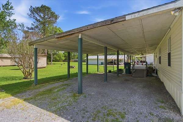Looking for acreage with potential? This 3-bedroom, 2-bath mobile home offers a spacious split floor plan with approximately 1,686 square feet of living area, all set on 1.5± acres of beautifully maintained land. The property features great outdoor amenities, including a 33x12 covered rear porch—perfect for relaxing or entertaining—a 28x16 workshop with electricity, and an additional storage shed for convenience. Inside, the generous living room flows seamlessly into the breakfast area and kitchen, creating an open and inviting layout. The kitchen includes a breakfast bar, solid surface countertops, an electric range/oven, and connects to a formal dining room for added versatility. The primary suite offers plenty of space along with an en suite bath featuring a double vanity, walk-in closet, and two separate showers. The two additional bedrooms are well-sized and share a full bathroom. With a little TLC, this property presents a fantastic opportunity for the right buyer or investor to make it their own. Schedule your private showing today! Photos are edited by a professional photo editor for marketing purposes. Some photos may have Ai Generated Furniture in the homes for visualization purposes.