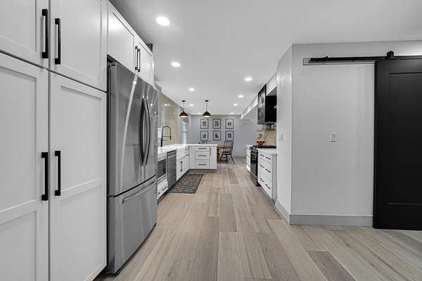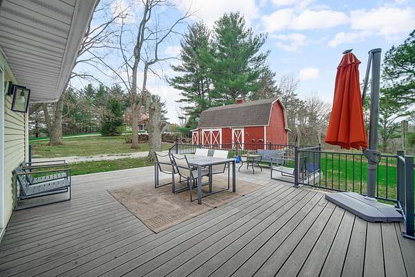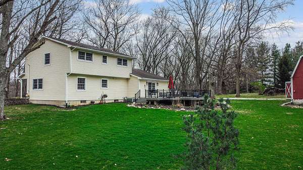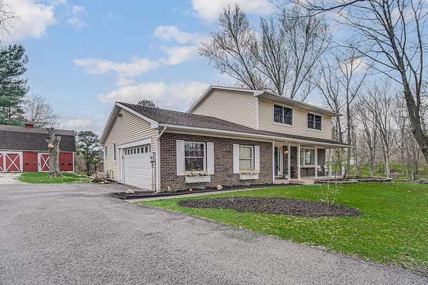 Attention outdoor enthusiasts! Check out this FULLY RENOVATED 2-story, immersed in nature on 1.79 wooded acres with its own barn! All the perks that come with the serenity of country living, yet you're still just 15 minutes from downtown Valpo! Enjoy your morning coffee on the covered front porch before stepping into the welcoming entryway/open-concept living room with bay window! The entire home is airy & bright with lots of natural light + gorgeous luxury vinyl plank (LVP) flooring flowing throughout! The STUNNING eat-in galley kitchen features a charming dining area as well as all stainless appliances, quartz (Cambria) countertops & a custom tile backsplash before opening up to the family room (could serve as a formal dining room) with built-in coffee bar, electric fireplace & walk-out access to the deck/backyard; the perfect spot to get lost in a good book! A cute half bath rounds out your main level, while the upstairs boasts four spacious bedrooms (including master with adorable bath en suite), plus a remodeled full guest bath! Your FINISHED basement affords plenty of extra living & entertaining space, including a large rec room (could make for a great home theater or playroom), exercise room, home office, convenient full bathroom (soaking tub) AND unfinished utility/laundry room for added storage space! You'll love hosting friends for cookouts this summer in your private, wooded backyard retreat. Sprawling 276 sqft composite deck and 34'x20' BARN to house all your toys, with a loft, workshop, air filtration system & authentic Nashua wood burning stove, making for a low-cost heat source where you can hang out all year round! Attached 2.5-car garage with another workshop area, LOW taxes, NO HOA, terrific Union Twp schools! Whether you're looking to start a small hobby farm or just a little escape, consider upgrading your subdivision for more wildlife with this is truly unique property in a stellar location where you'll love creating new memories!