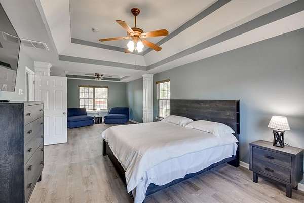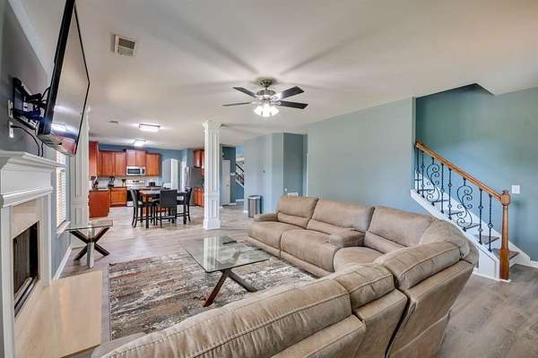 Introducing an exceptional opportunity in the sought-after Avery Place community-this expansive 5-bedroom, 4-bath residence offers approximately 3,400 square feet of thoughtfully curated living space, blending comfort, functionality, and income-producing potential. Ideally located just minutes from the Fort Mitchell Visitors Center and a short drive to Columbus, GA, this property delivers both convenience and accessibility while maintaining a sense of privacy and retreat. Designed to accommodate both everyday living and elevated hosting, the home features a spacious and versatile floor plan, including multiple living areas, a dedicated home office, and a well-appointed main-level bedroom and full bath-ideal for guests or multigenerational living. The interior showcases a fully equipped kitchen with ample cabinetry, modern appliances, and an inviting dining area that flows seamlessly into the main living spaces. Smart home features, including Smart TVs and high-speed connectivity, enhance both comfort and functionality for residents and guests alike. Upstairs and throughout, the home offers generous sleeping accommodations, including two king suites, additional guest bedrooms, and flexible sleeping arrangements-perfectly suited for larger households or extended stays. Step outside to a private outdoor setting designed for relaxation and entertaining, featuring a covered patio with dining and lounge areas, a gas grill, and an expansive backyard-offering both privacy and versatility. Currently operating as a successful short-term rental, this property presents a rare opportunity for buyers seeking a refined primary residence, a second home, or a turnkey investment with proven income potential.