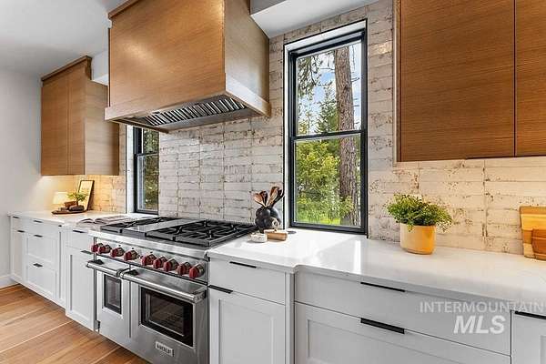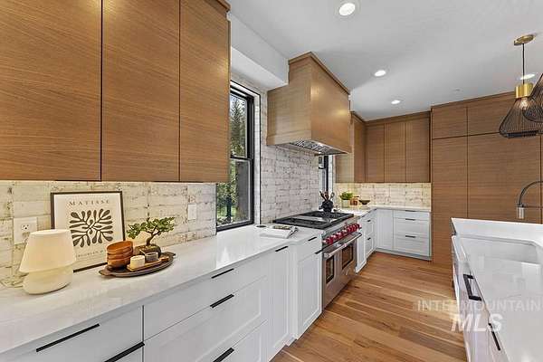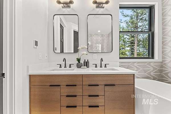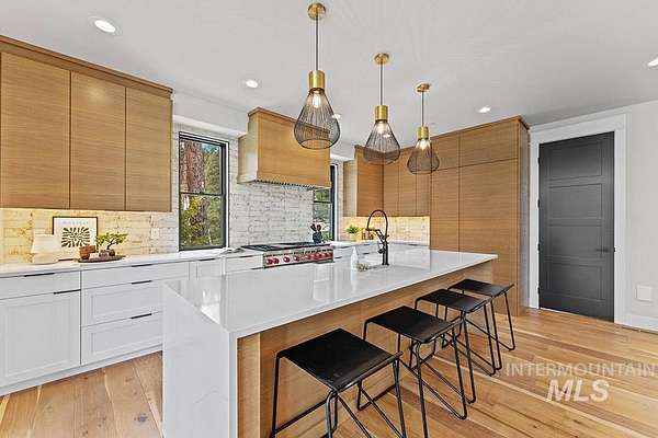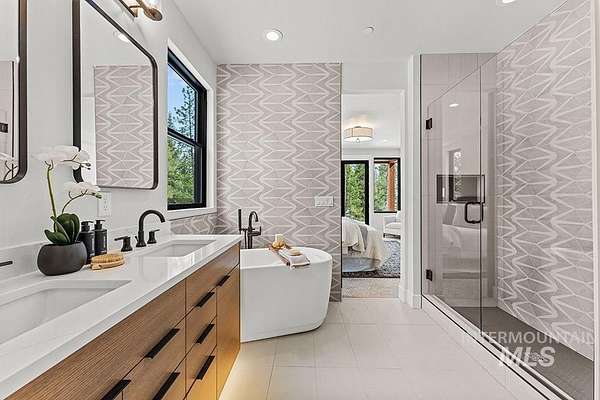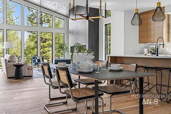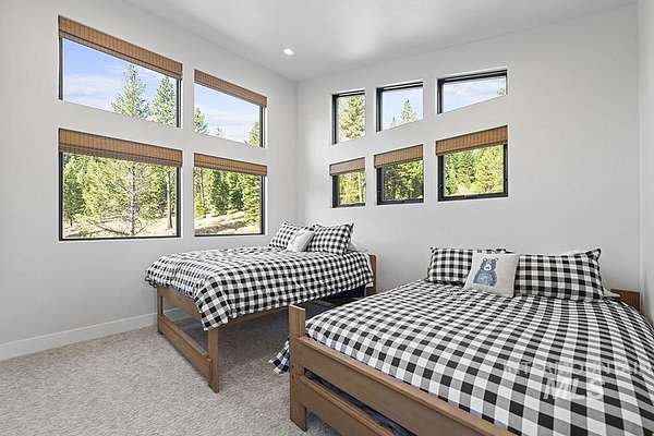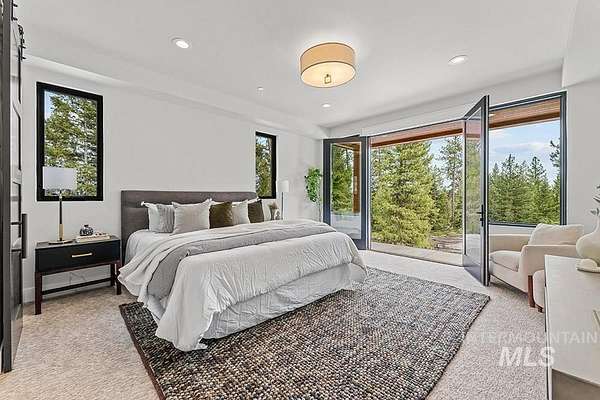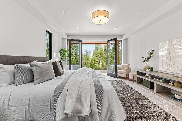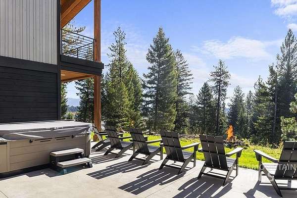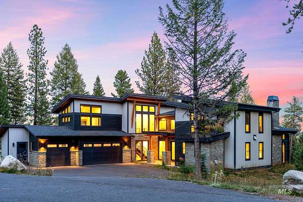 A stunning custom luxury cabin in McCall, set on a sprawling 3.25-acre lot just minutes from Payette Lake! The modern interior showcases a spacious open layout with vaulted ceilings, floor-to-ceiling windows framing private forest views, warm wood-lined ceilings, and a dramatic fireplace that anchors the living space. The great room opens seamlessly to an exceptional outdoor living area, featuring an expansive covered patio with sweeping views and complete privacy. The gourmet kitchen is designed for both beauty and function, with sleek flat-paneled, two-toned cabinetry, a large entertaining island, and top-of-the-line stainless steel appliances. The luxurious main-level primary suite offers a private patio, spa-inspired en suite bath with high-end finishes, and a generous walk-in closet. Upstairs, a junior suite boasts its own private balcony and en suite amenities. Flexible spaces throughout the home include a bonus/game room, office, and additional sleeping quarters. Perfectly situated just south of Payette Lake, this retreat provides easy access to all that McCall has to offer, boating, fishing, hiking, skiing, golf, and a vibrant dining scene!