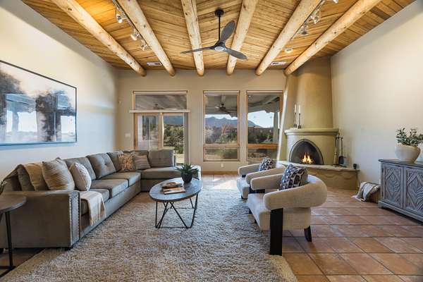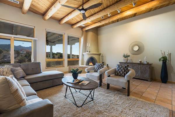 Perched atop a hill in La Mesa this extraordinary custom built Thomas J Ashe home sitting on 3.29 acres offering unmatched privacy, spectacular unimpeded mountain views. From the minute you enter this home you are greeted by arched exposed adobe entry and walls, Vegas, tongue and groove ceiling and custom kiva fireplace. Upon entering the totally upgraded kitchen, the chef in you is really at home, with an upgraded cooktop, double ovens and tons of counterspace. Living rooms is comfortable, bright and airy, perfect for entertaining. A large covered back porch, for relaxing with Inspiring views. There has been over $210,000 of recent upgrades, updates. See attached feature sheet. Home warranty until 2027.