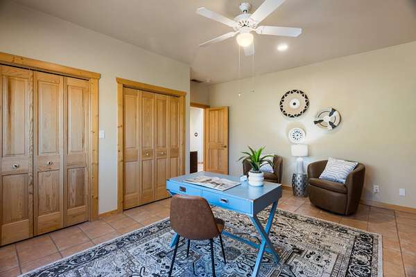 I-25 to Placitas exit #242. East on Highway 165 for 2.2 miles take left on Tierra Madre. Follow for 1.1 miles, turn right on Calle Chamisa to #38 on right.