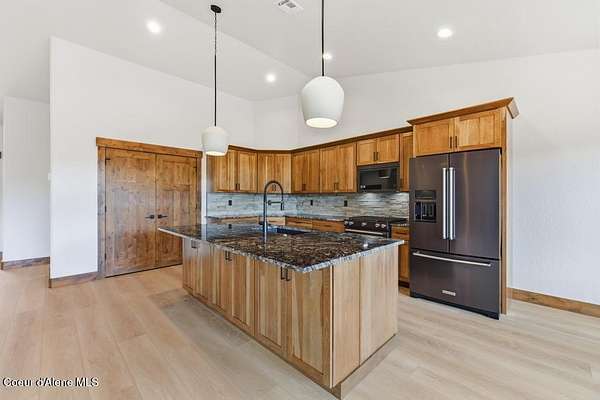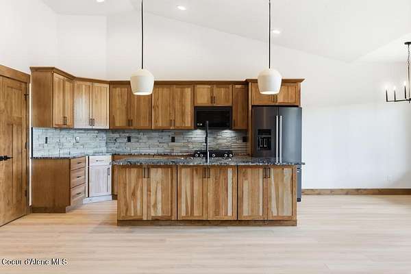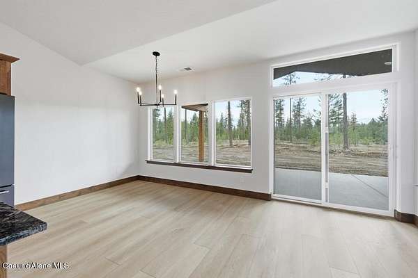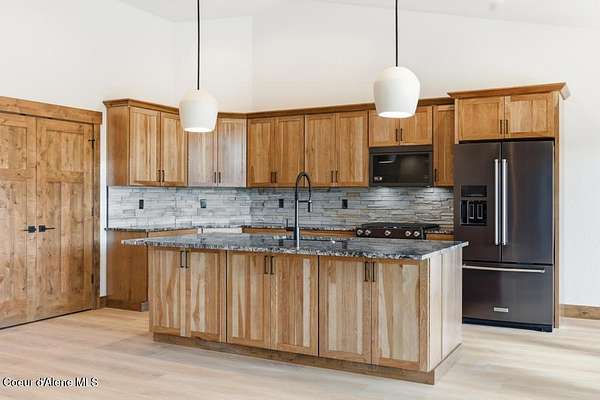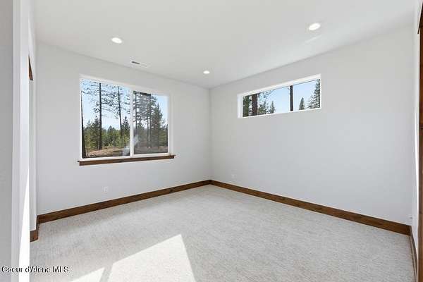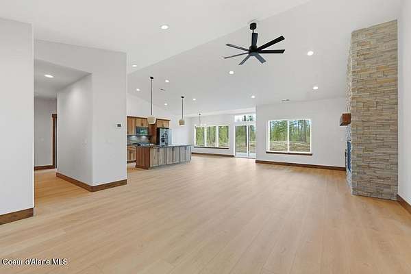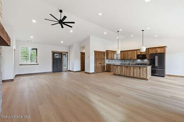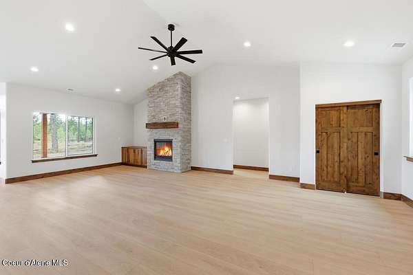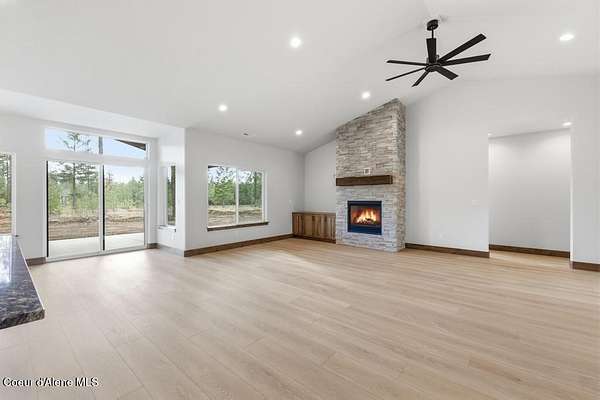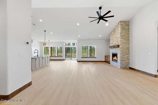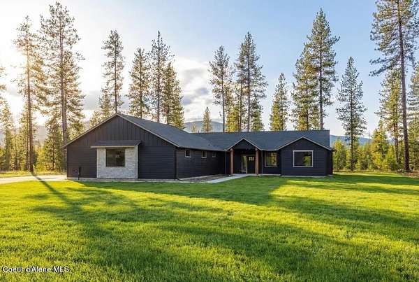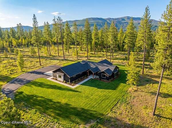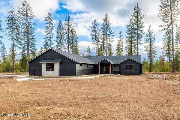 MOVE IN READY NEW CONSTRUCTION! Located in a gated community in Blanchard, Idaho, this 2,252 sq ft home sits on a 5-acre corner lot and blends comfort, space, and scenic surroundings. The open-concept layout features a vaulted great room with a fireplace and connects seamlessly to the kitchen and dining areas. The primary suite includes a walk-in closet and en suite bath with dual vanity. Two additional bedrooms share a Jack and Jill bathroom with dual sinks and a private toilet room. A mud/laundry room, covered front entry, and covered back porch offer year-round functionality. Nestled near Hoodoo Mountain and Mount Spokane, this home is just minutes from state land for hiking and wildlife watching. Enjoy nearby recreation at Stoneridge Resort and Golf Course or unwind at Lake San Souci and Blanchard Lake. No Landscaping is included. Photos are for showing what future landscape could do for curb appeal.