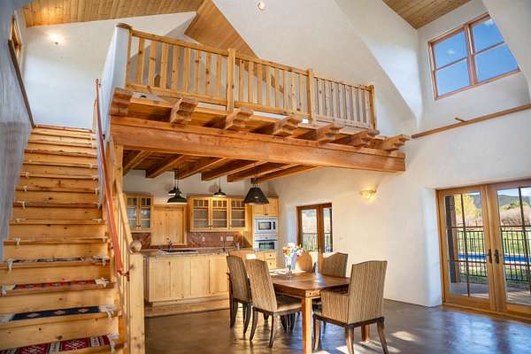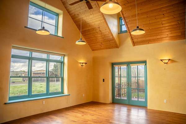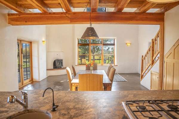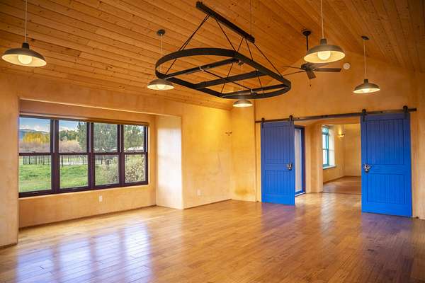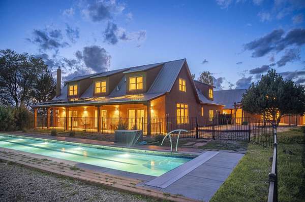 A river runs through it! Just 8 minutes from Taos Plaza, this rare 27+ acre property is both a horse haven and a thriving wildlife sanctuary. The main straw-bale home offers natural comfort year-round, while the guest house provides private space for family or caretakers. The expansive irrigated pastures and wetlands create an unmatched sense of peace and privacy. Equestrian facilities include a 4-horse barn, multiple loafing sheds, and ample grazing areas. When it's time to unwind, swim year-round in the heated lap pool surrounded by nature and mountain views. Protected by a conservation trust in part, this property offers sustainable living, abundant wildlife, and proximity to everything Taos has to offer - a true New Mexico treasure.
