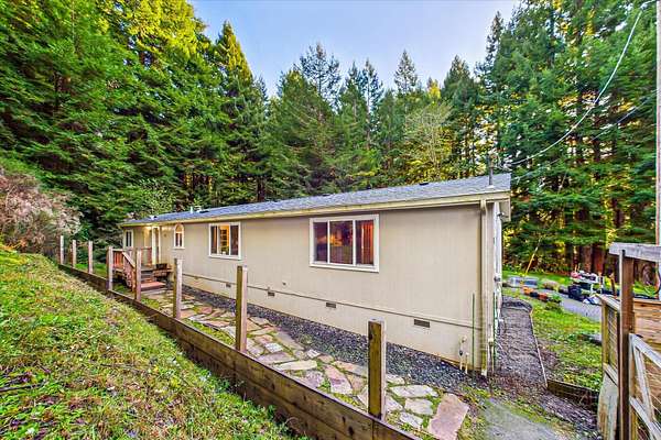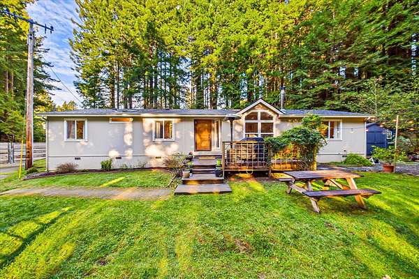 Est $3,015/moThis three bedroom home is magically situated down a private lane in the coveted Jacoby Creek School District. Surrounded by Redwoods and lots of privacy this manufactured home has designer finishes. The open kitchen has luce di luna quartzite counters, a farm house sink, and upgraded kitchen aid appliances. Laminate floors, vaulted ceilings, a wood stove and custom tile work can be seen throughout. A lush lawn, fire pit, outdoor storage, and a three car garage add to the livability of this very special property.